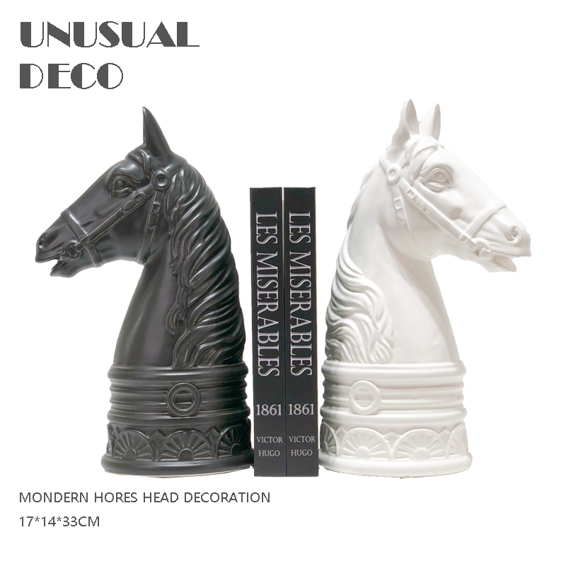新中式现代简约欧式黑色白色陶瓷马头摆件书档样板房售楼处饰品