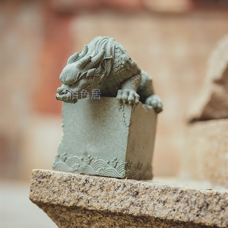 鱼缸造景创意盘龙青石家居中式茶宠摆件卧龙国潮复古送礼桌面装饰