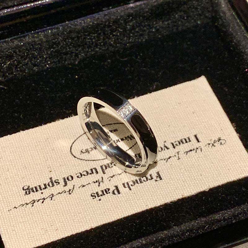 黑色滴釉钛钢戒指女轻奢高级感尾戒素圈戒指女小众设计锆石食指环