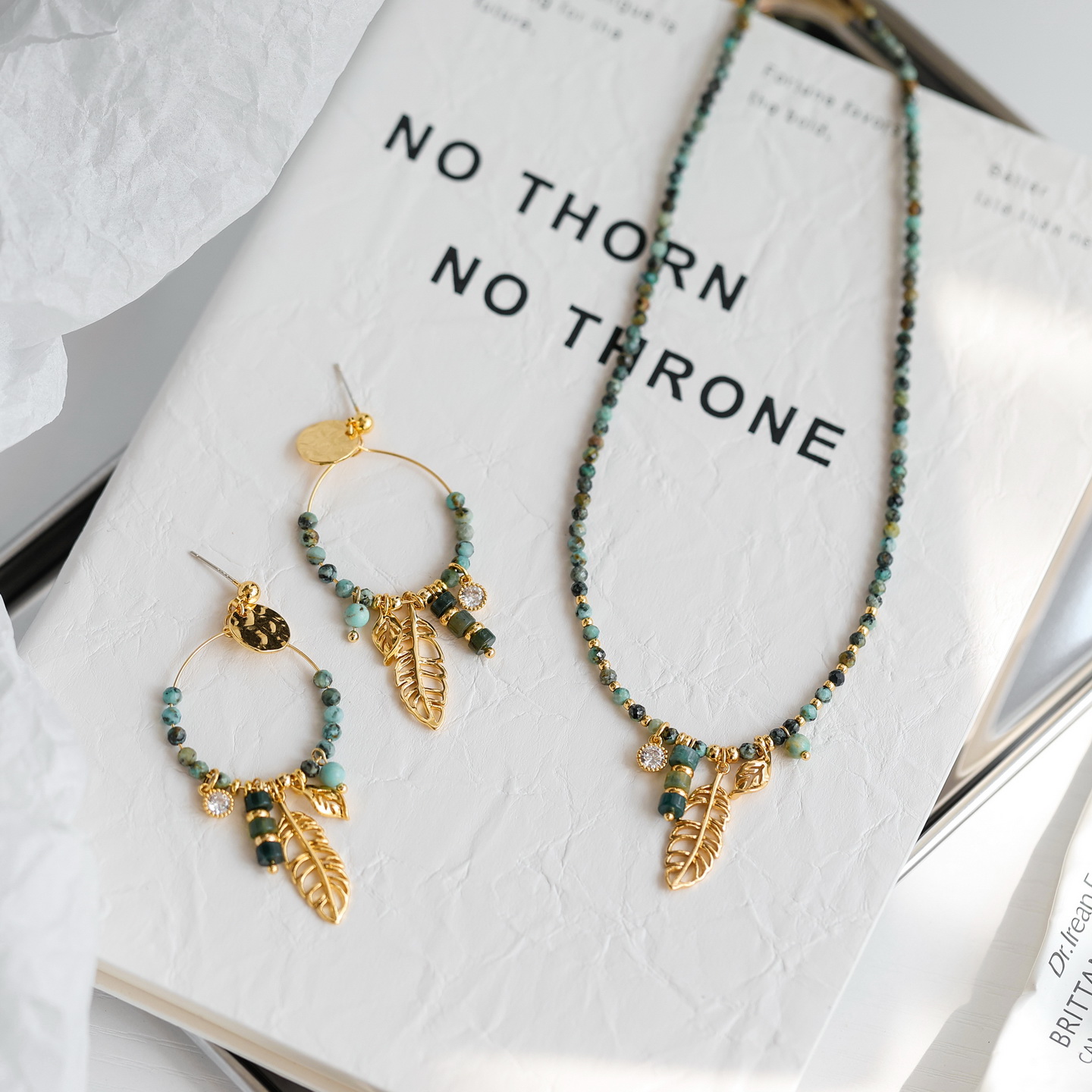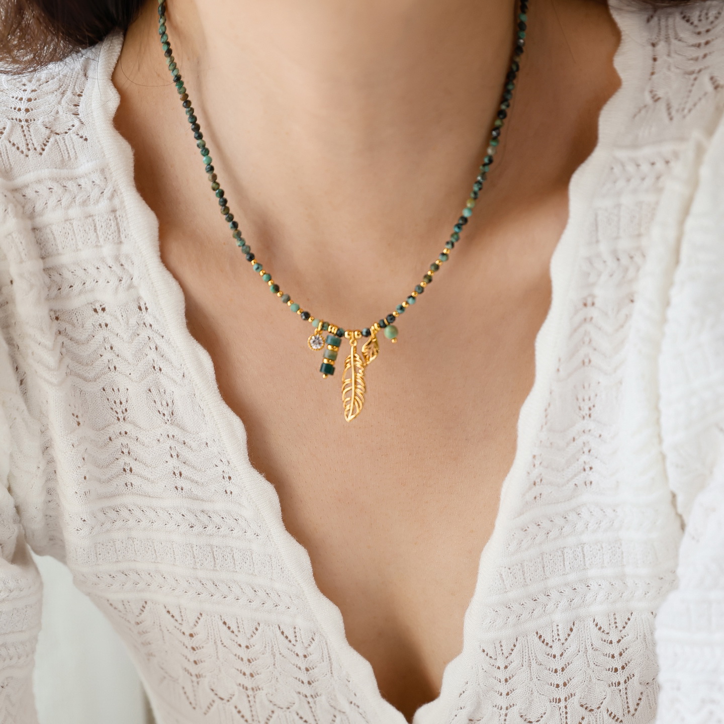 重工高品质~天然石绿松石非洲松石串珠项链女锁骨链小众设计礼物