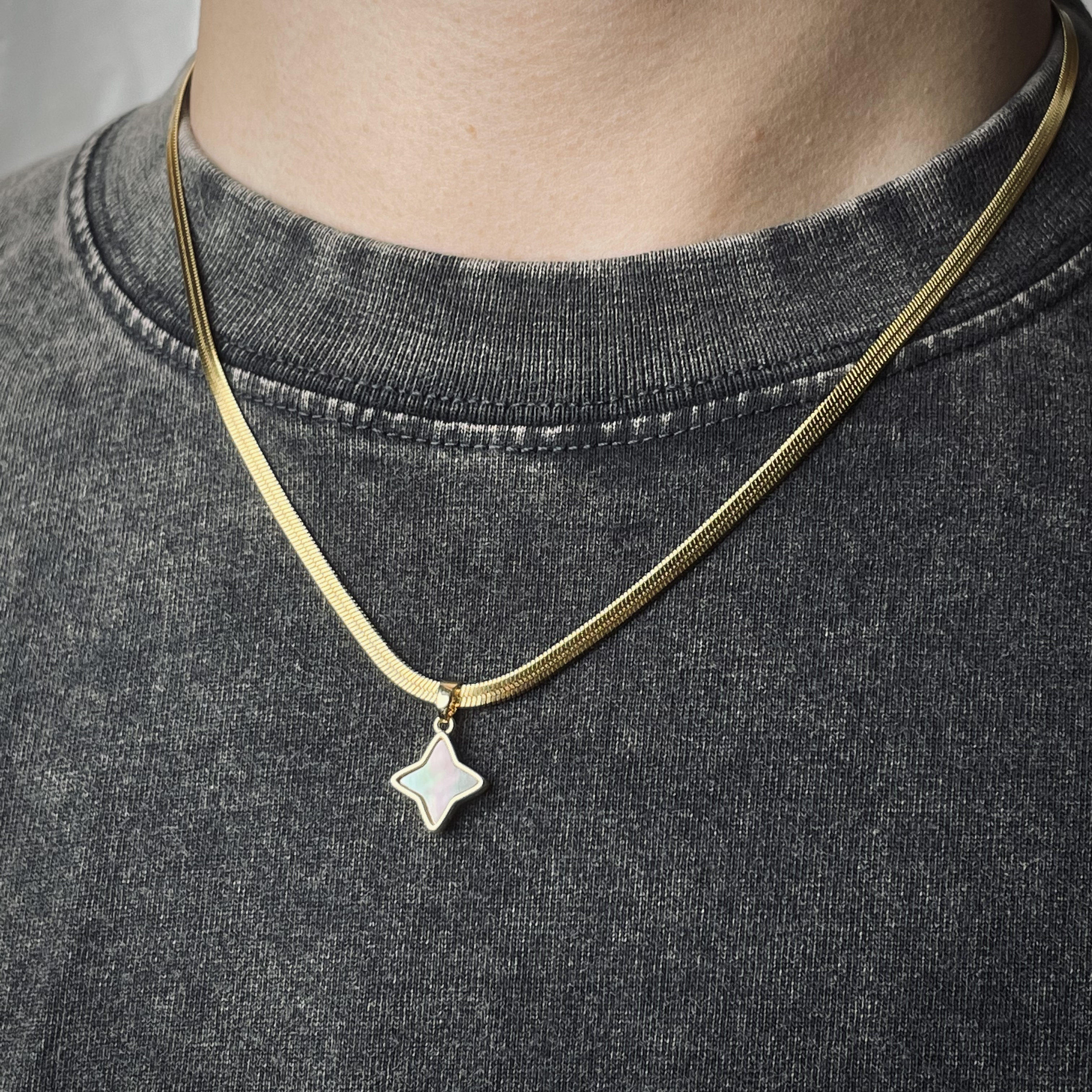 美式原创菱形黑贝母吊坠男女简约小众潮流高级感街头钛钢项链饰品