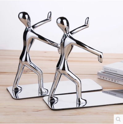创意不锈钢人形书夹 欧式书挡礼物 金属功夫书立书架书靠金色摆件