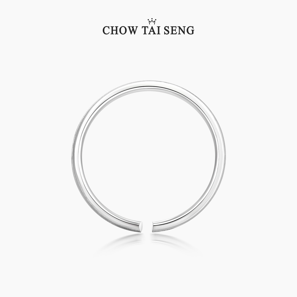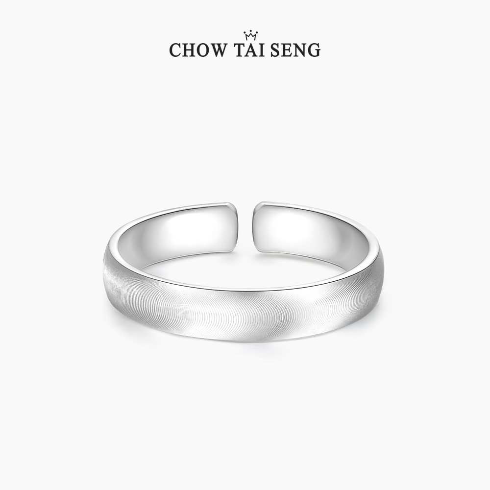 周大生猫眼戒指S990纯银素圈戒指女开口设计可调节指环生日礼物
