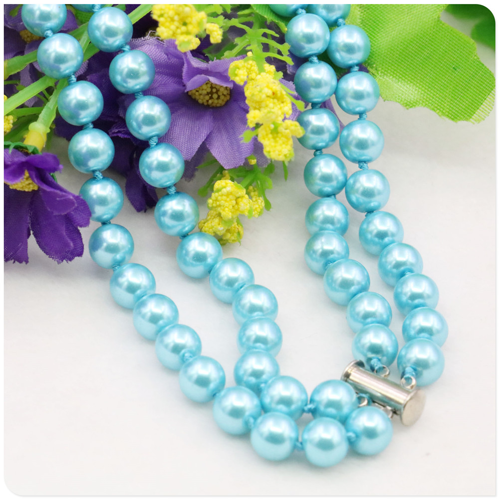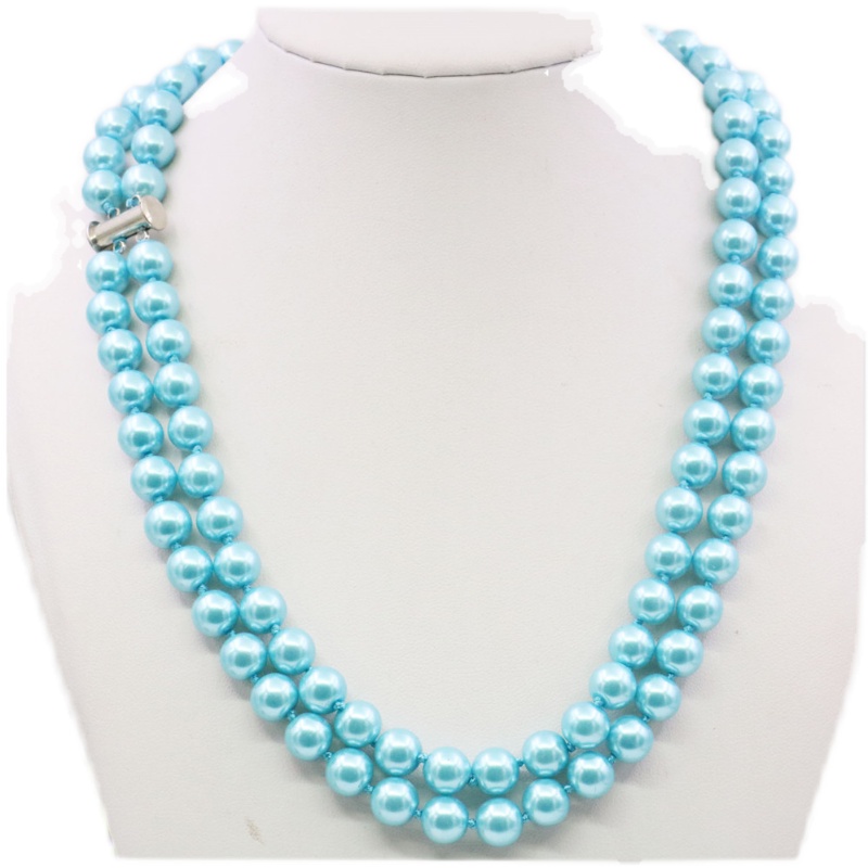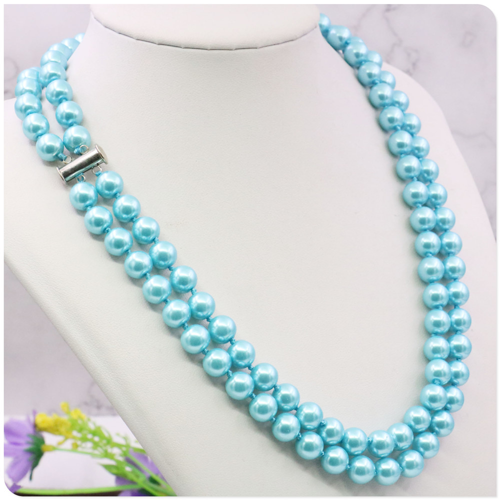 8mm圆珠双排浅蓝色玻璃珍珠项链 欧美手工编织简约锁骨链特色项饰