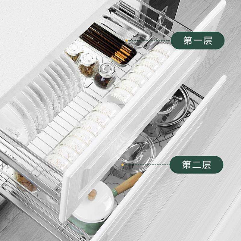 厨房橱柜拉篮304不锈钢调味篮收纳置物架双层抽屉式碗碟