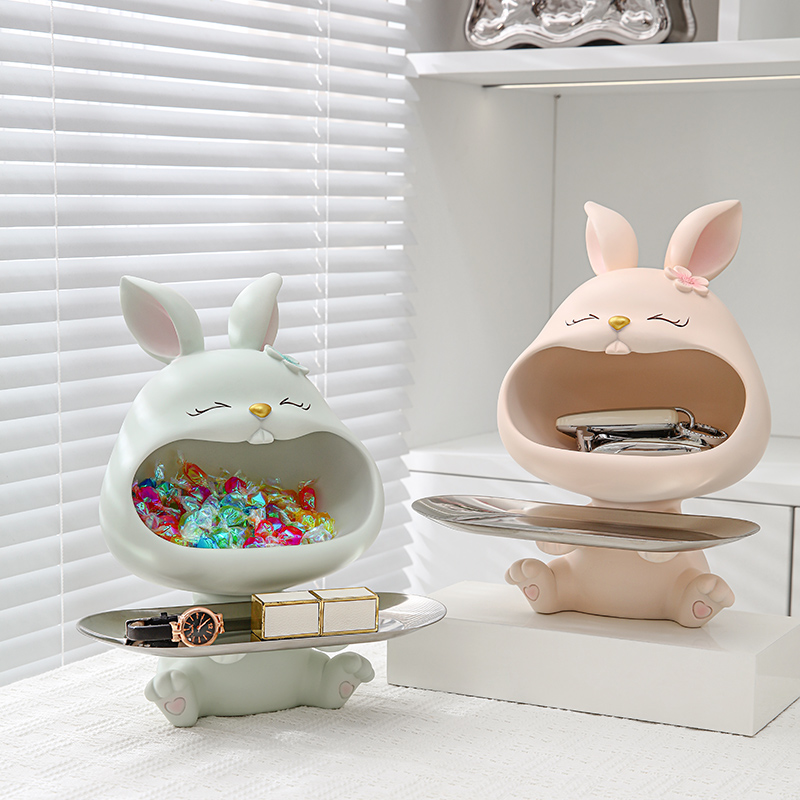 北欧樱花兔入户玄关钥匙收纳创意客厅电视柜装饰摆件乔迁新居礼品
