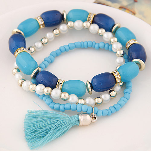 B0608欧美时尚 百搭潮流糖果米珠珠流苏多层手链