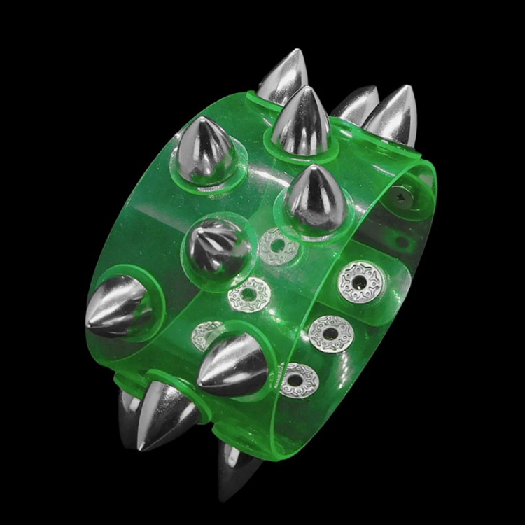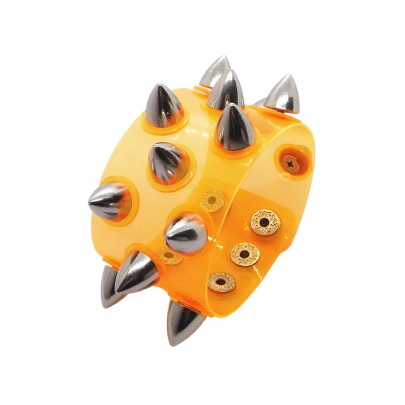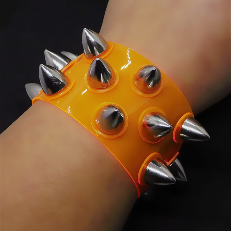 银色合金宽大莲蓬铆钉圆盘垫片桔黄色软塑料透明手链手环手镯饰品