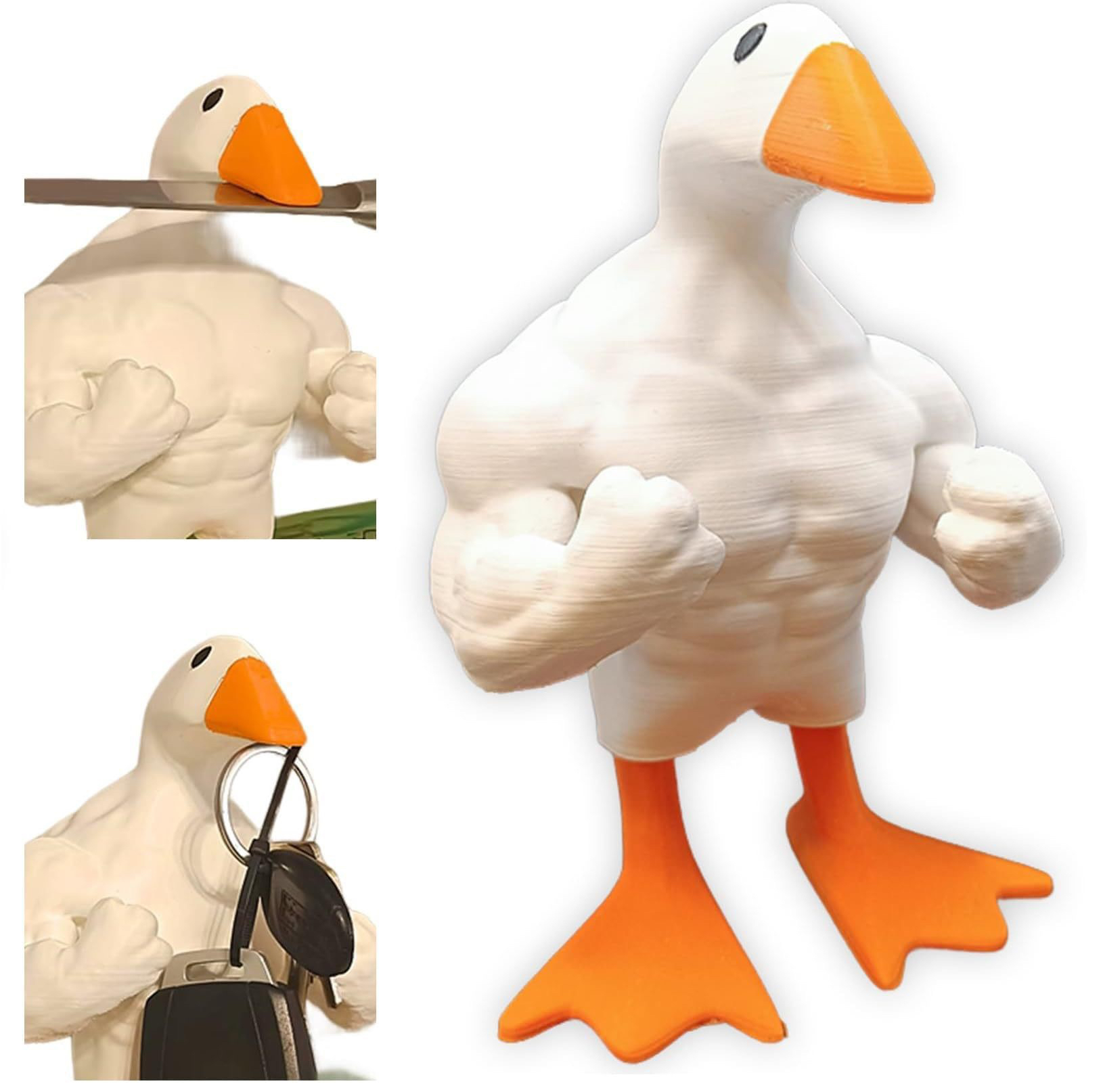跨境新款Buff Duck Figurine大力士鸭子雕像磁吸钥匙扣树脂工艺品