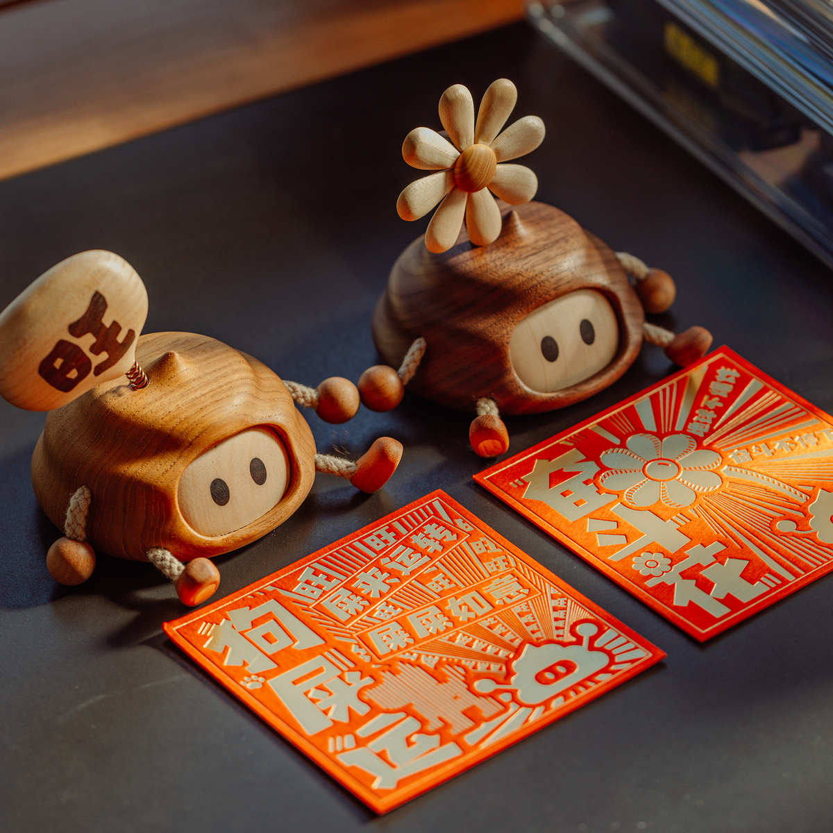 原创搞怪好运礼物礼品奋斗花狗屎运实木桌面摆件车载饰品送男友