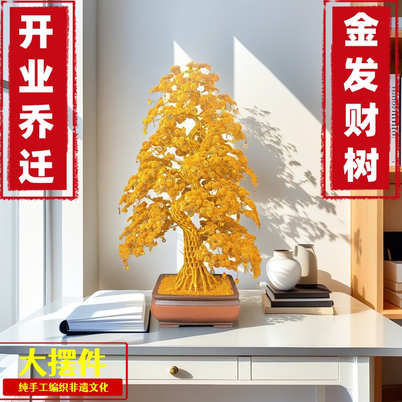 高端豪华发财树办公室装饰品现代简约开业乔迁招财风水商务礼品