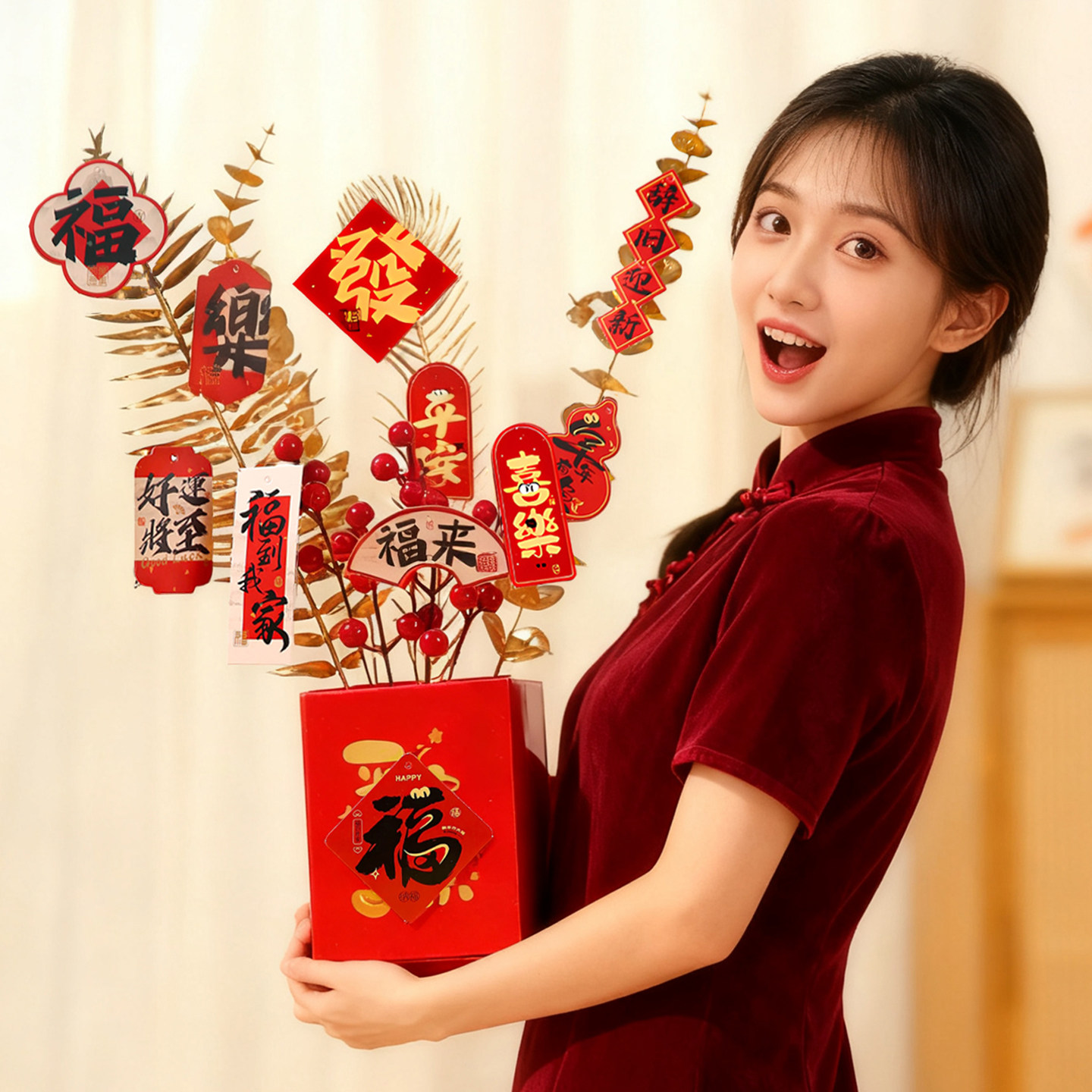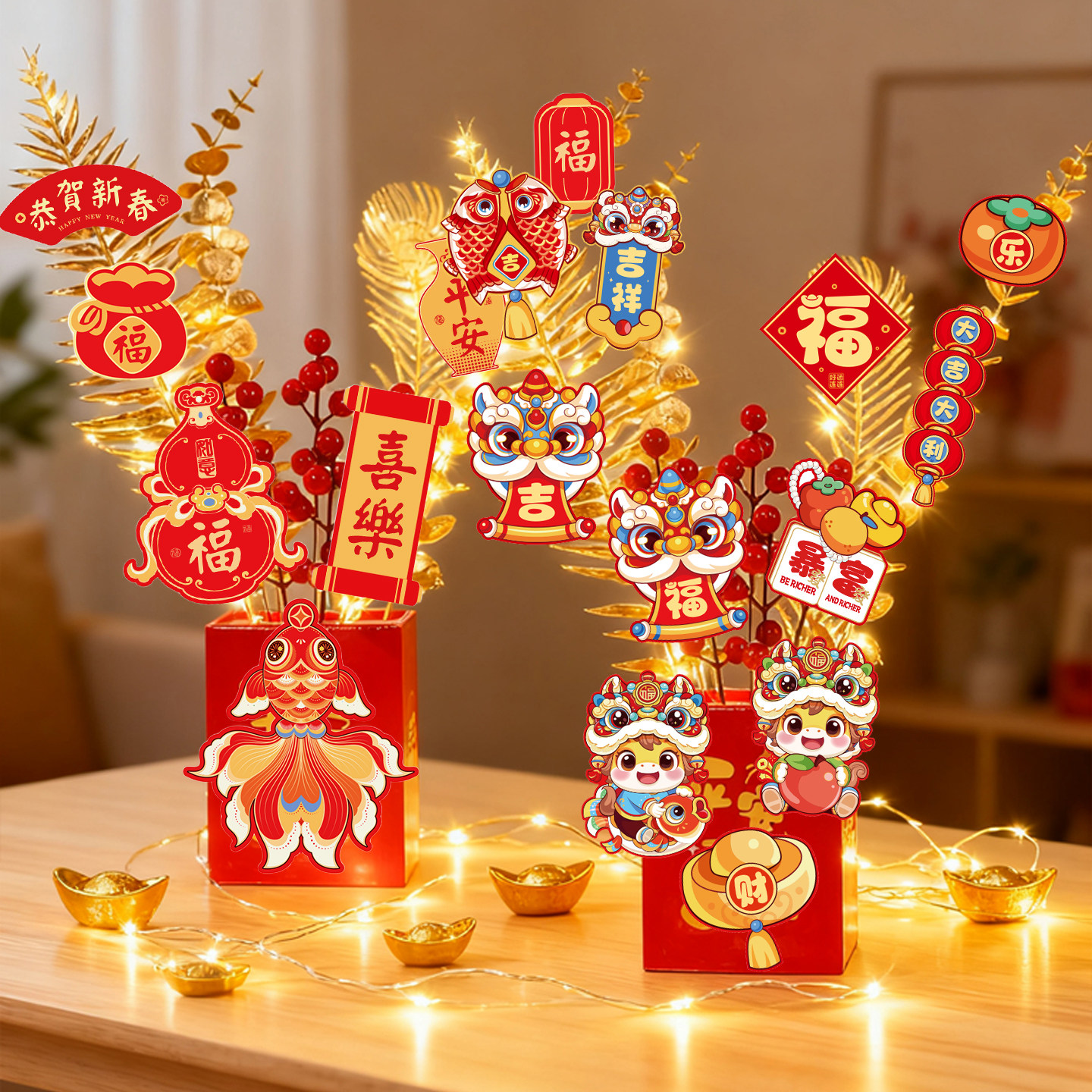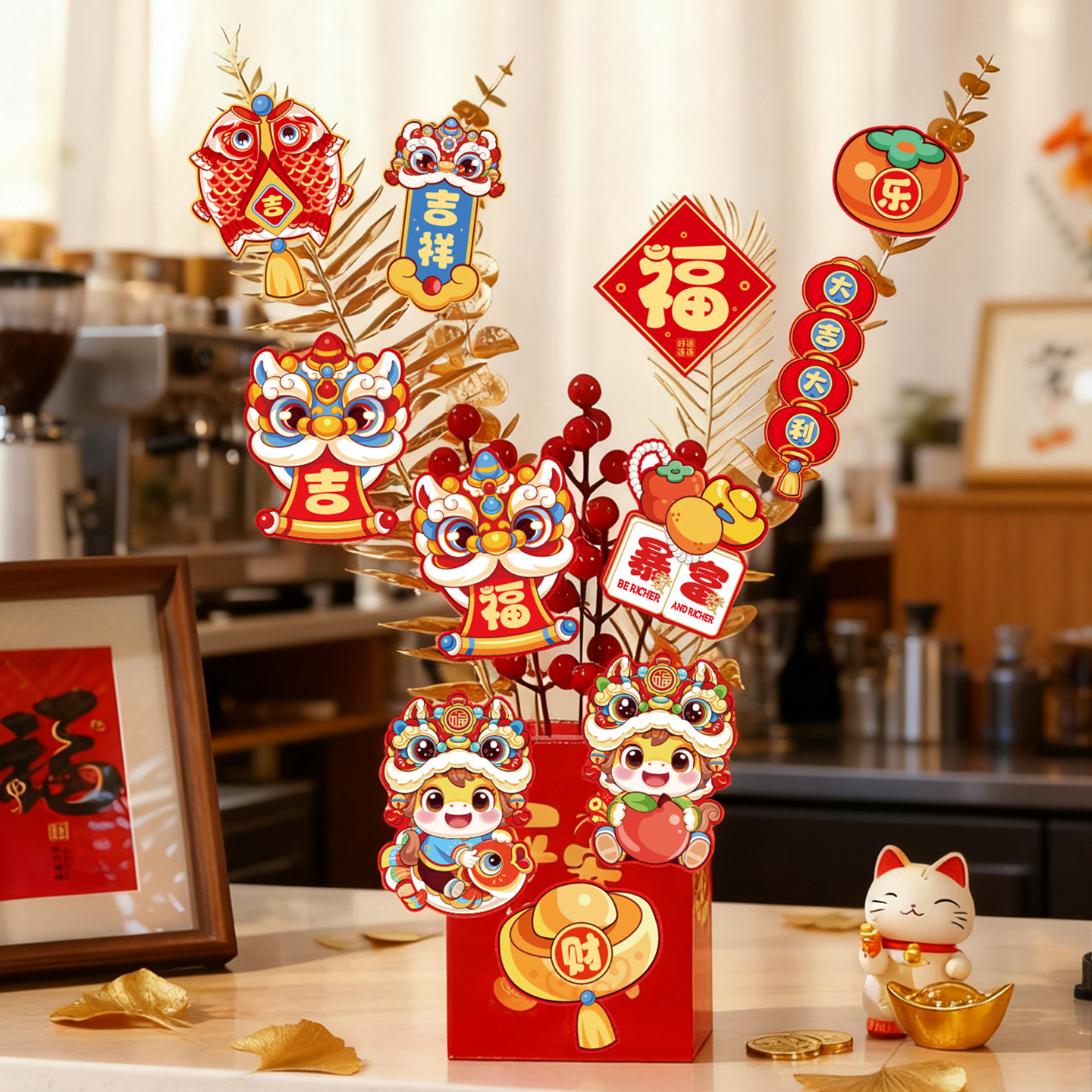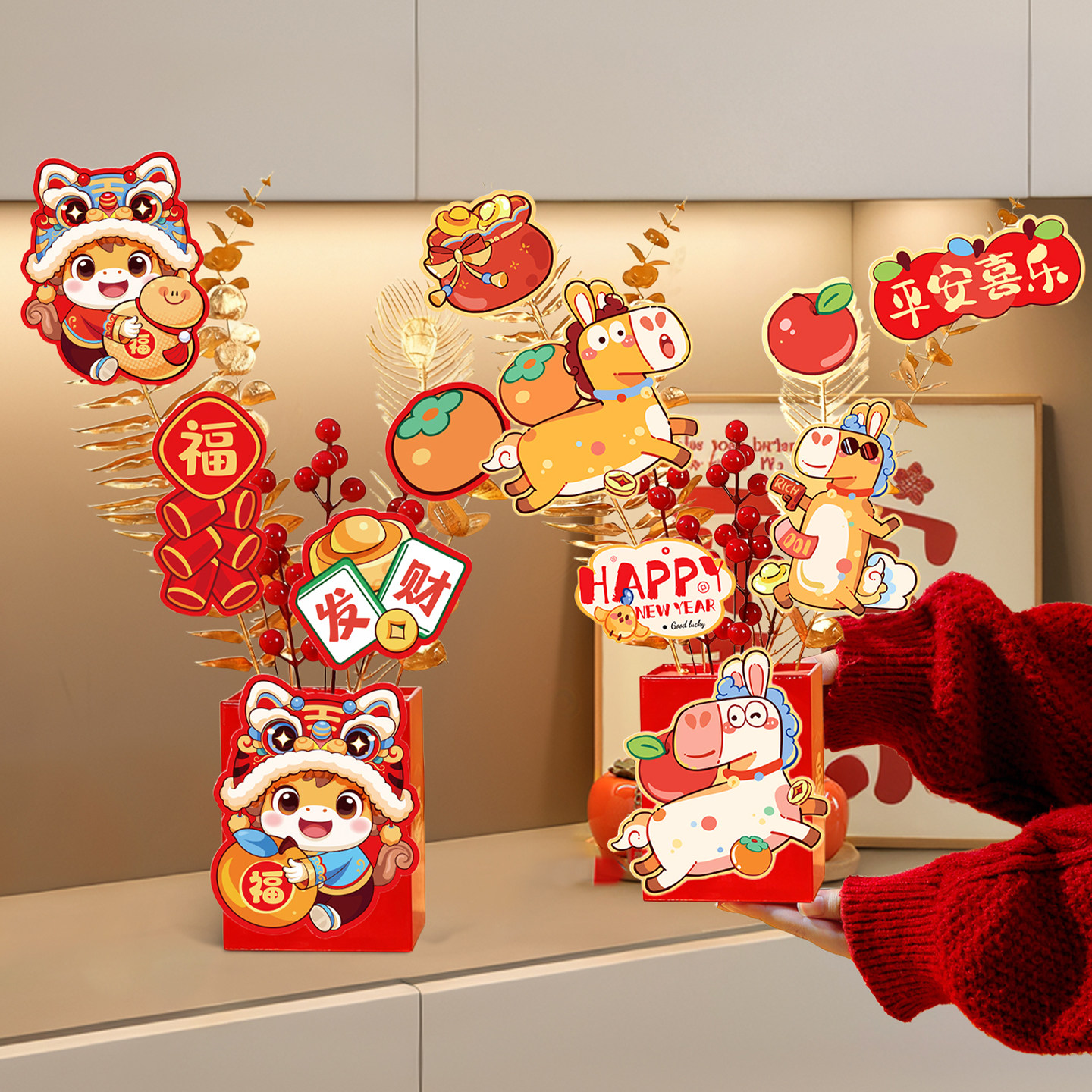马年2026新年装饰摆件抱抱桶仿真插花桌面摆设春节家庭氛围布置