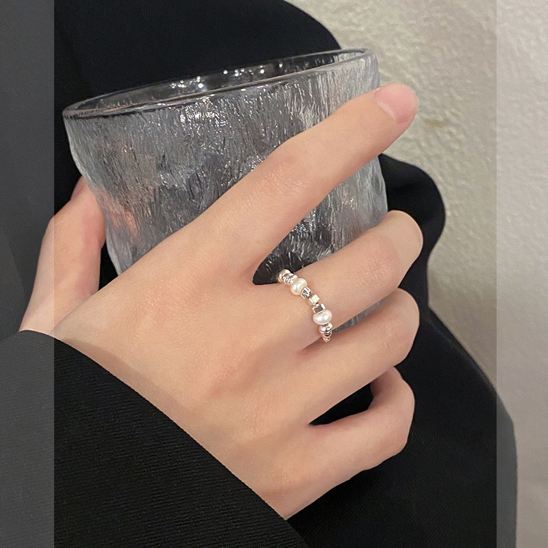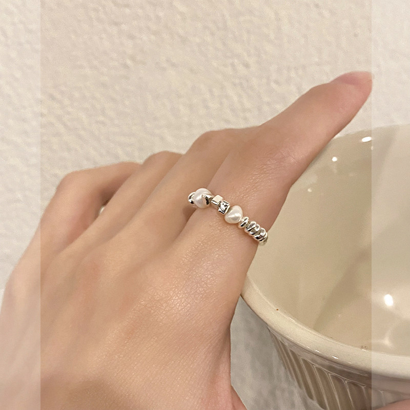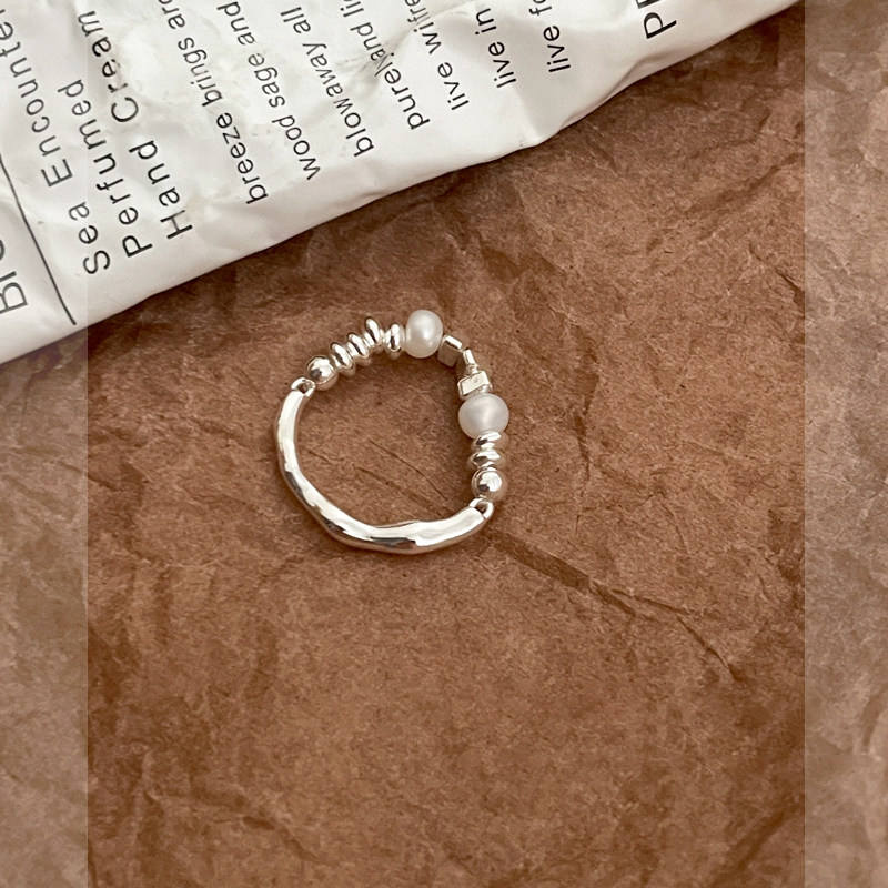 不规则碎银子珍珠款戒指女新款个性小众设计轻奢高级感气质食指戒
