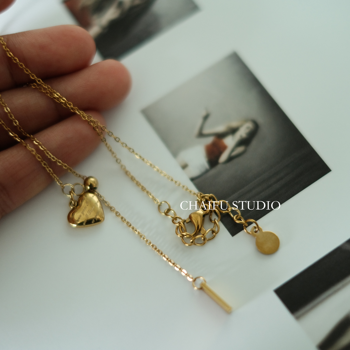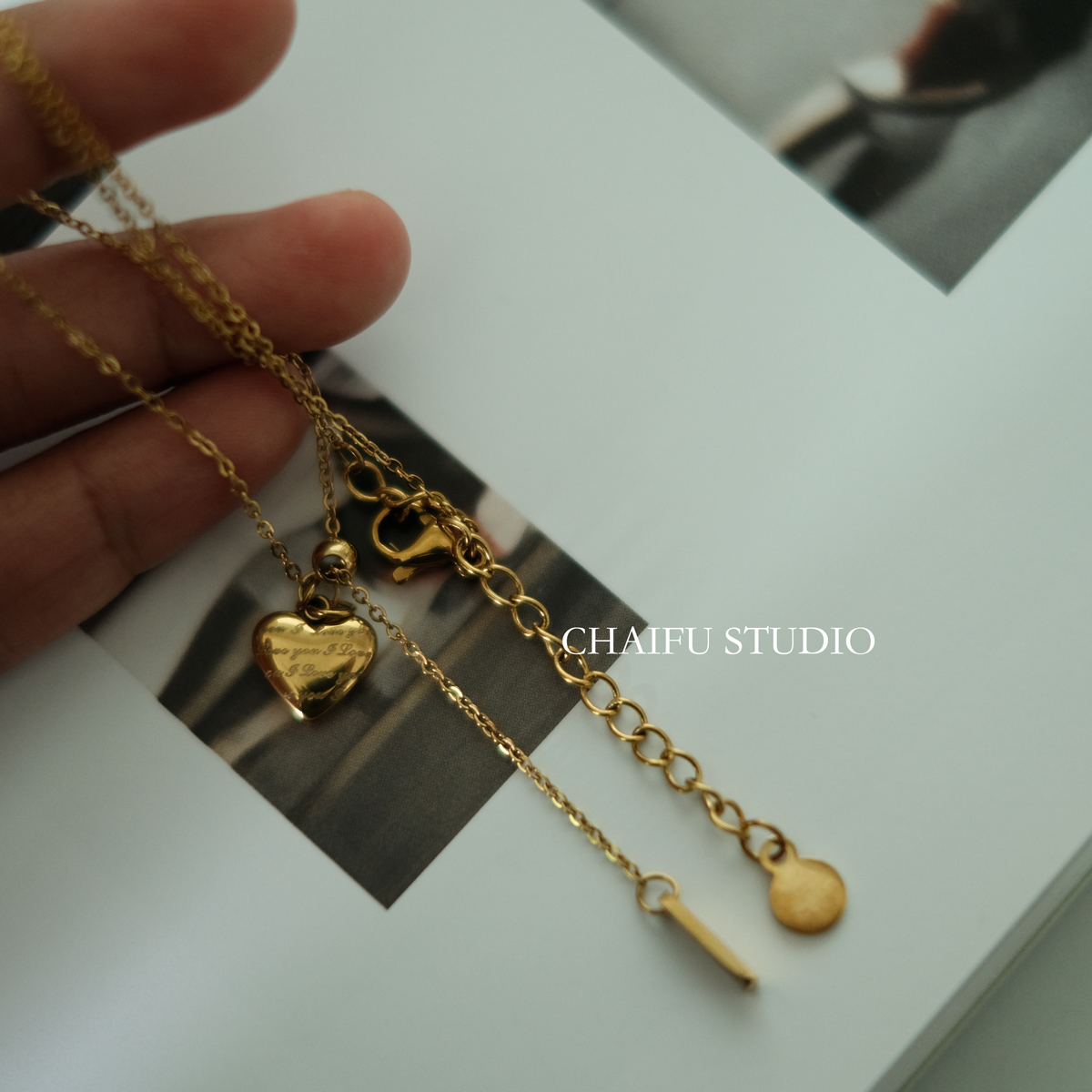 柴夫工作室/X219 复古文艺爱心刻字英文简约细链锁骨项链通勤百搭