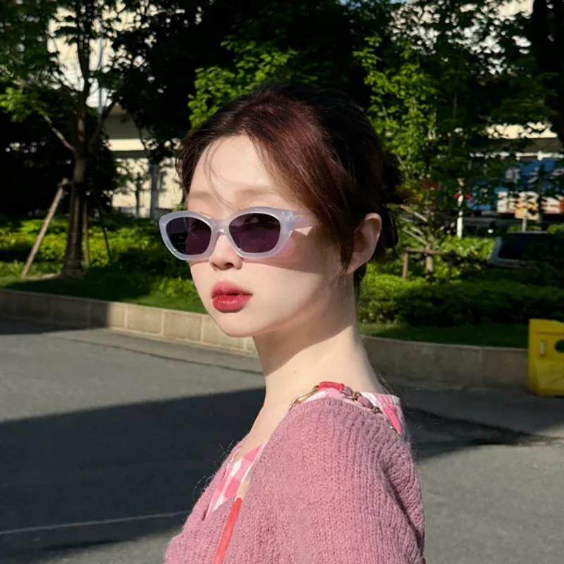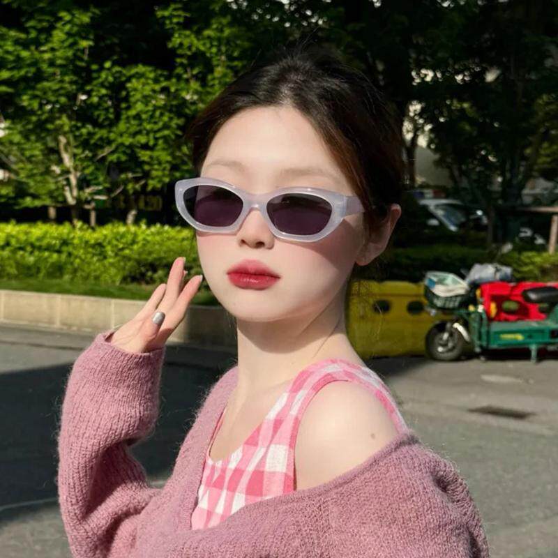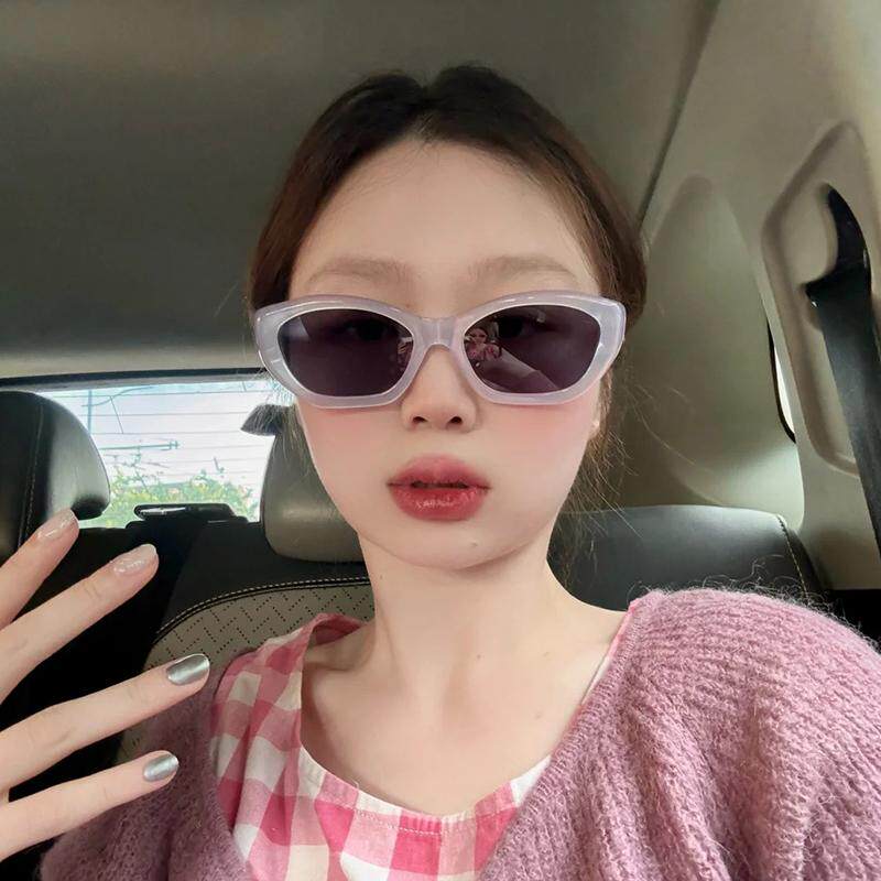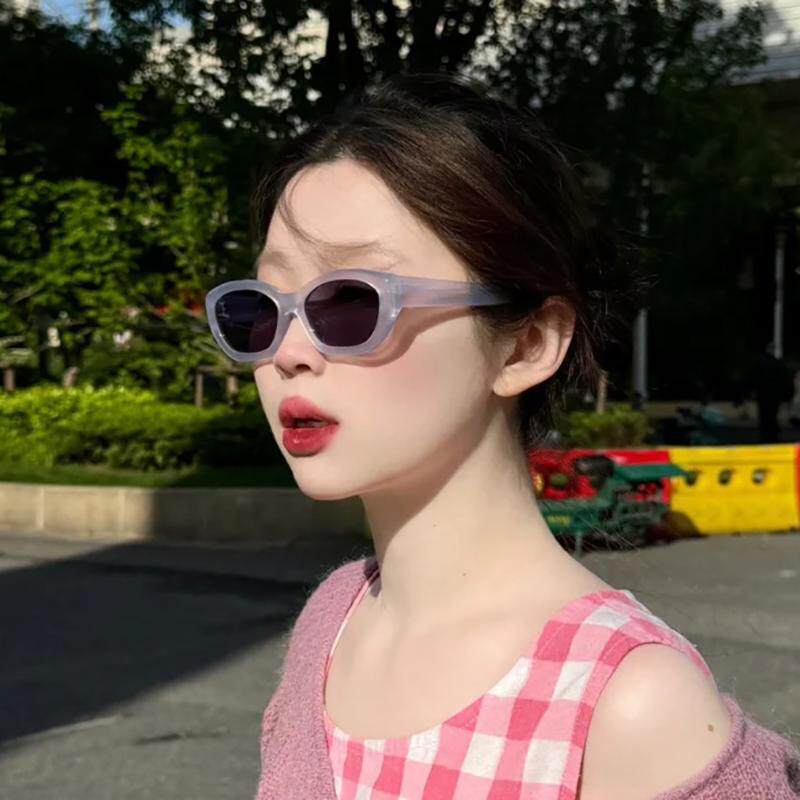2024新款多边透蓝色时尚太阳镜女圆脸凹造型个性防晒墨镜防紫外线