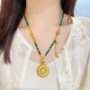 新中式手工diy绿色圆珠花丝如意八宝旋转圆盘项链国风串珠民族风