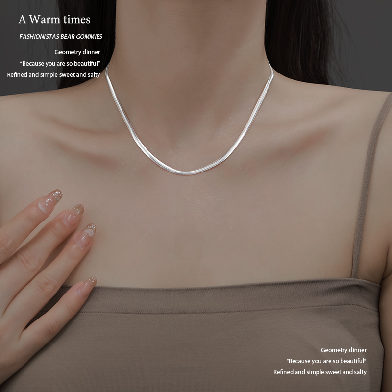 [Z小姐]925纯银素银刀片项链女款2023新款简约冷淡风锁骨链蛇骨链