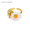 春夏新款白色雏菊花朵开口戒指可调节轻奢小众珐琅食指戒女友礼物