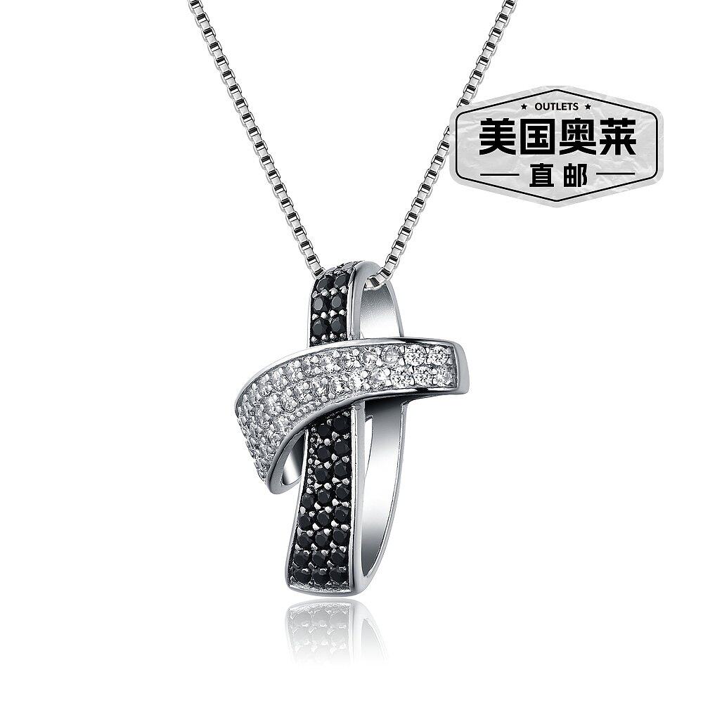 自营 GENEVIVE 纯银黑色镀黑色立方氧化锆项链 - 黑色 美国奥莱直