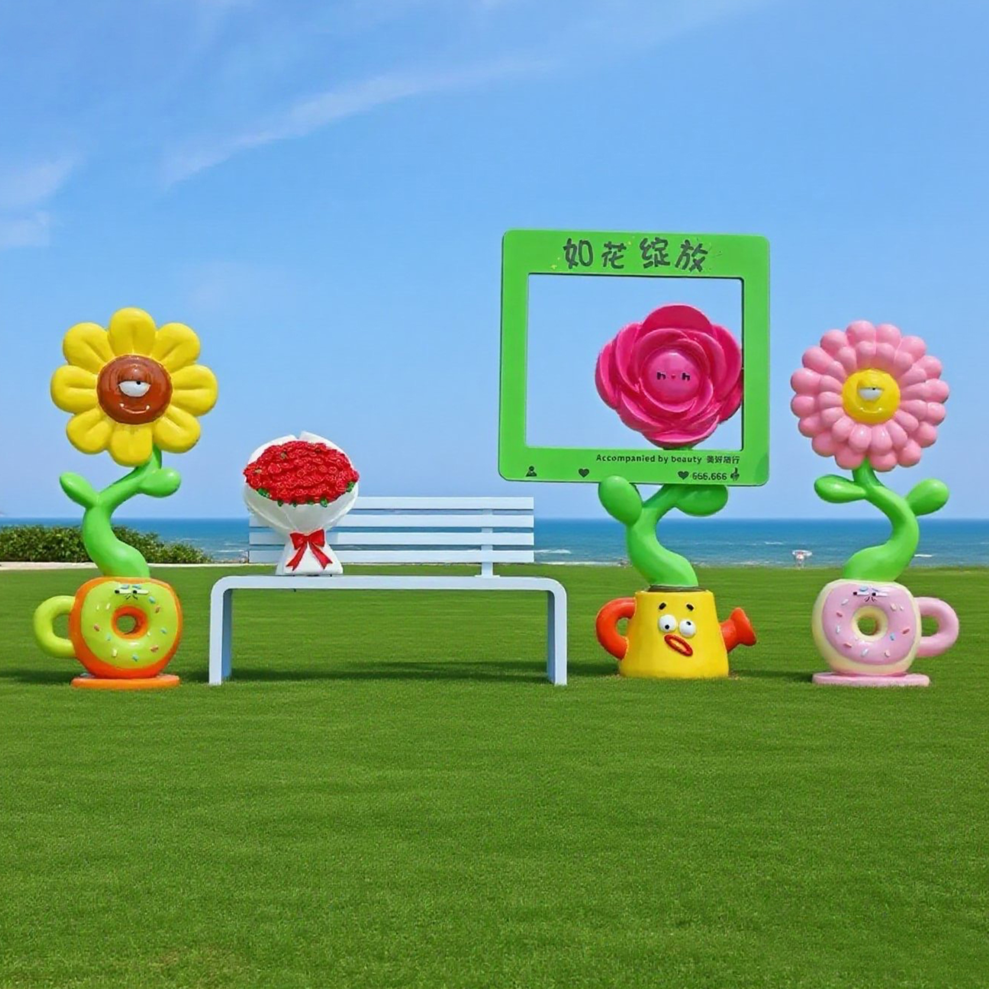 网红打卡拍照仿真玫瑰花朵雕塑户外有钱花玻璃钢摆件商场景区美陈