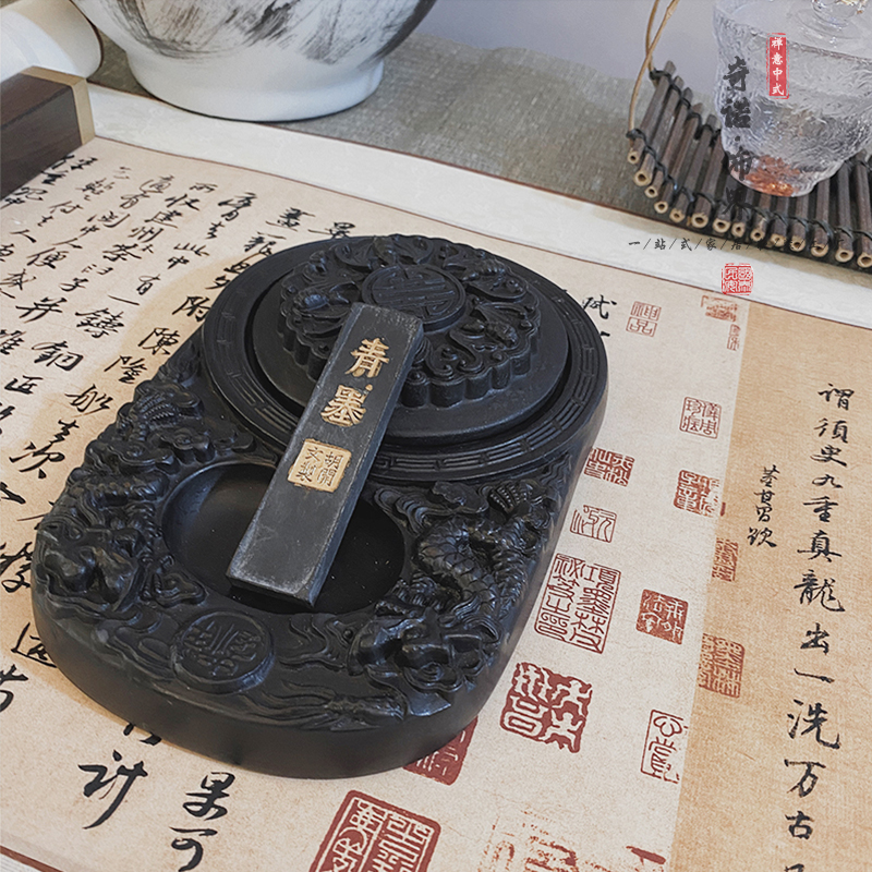 新中式样板房间禅意摆件组合售楼处会所书房书桌全案装饰砚台书画