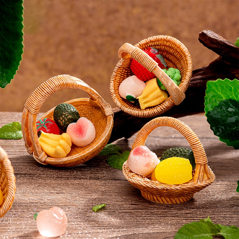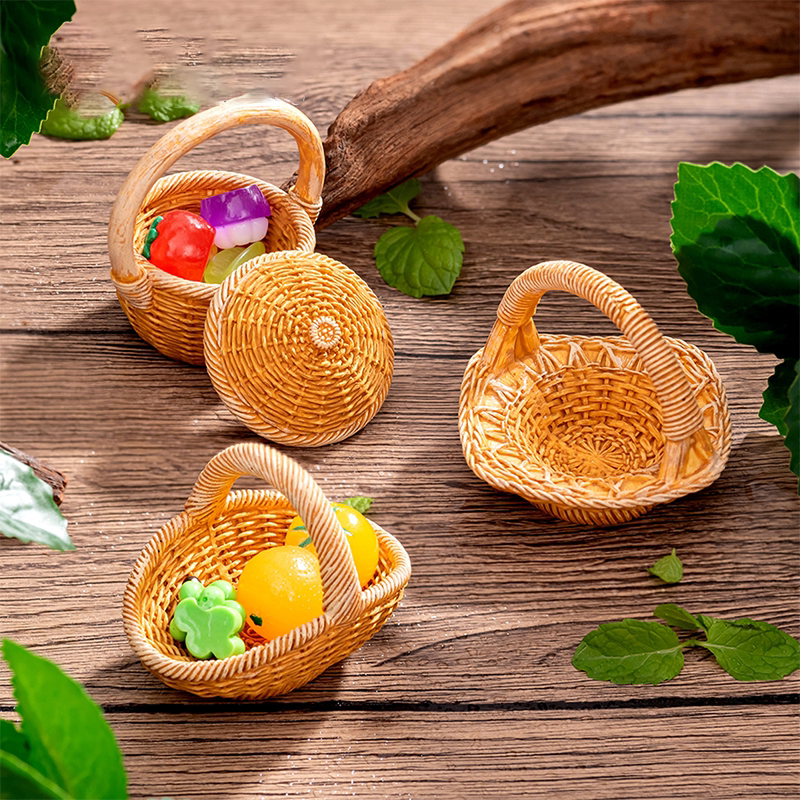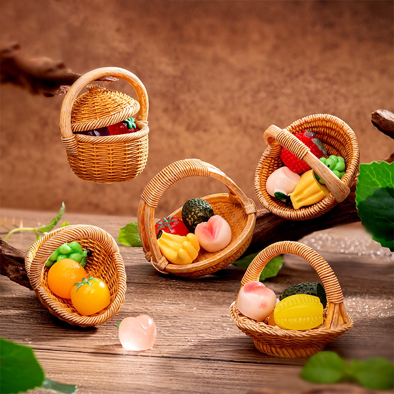 微景观创意仿真微缩装水果蔬菜竹编果篮子小摆件 diy治愈系装饰品