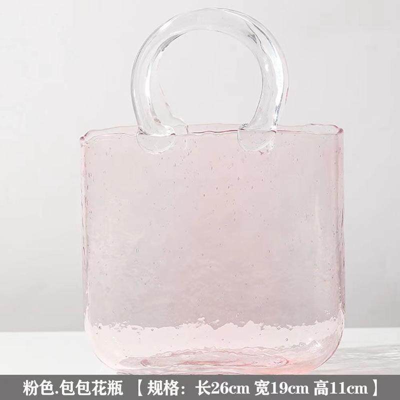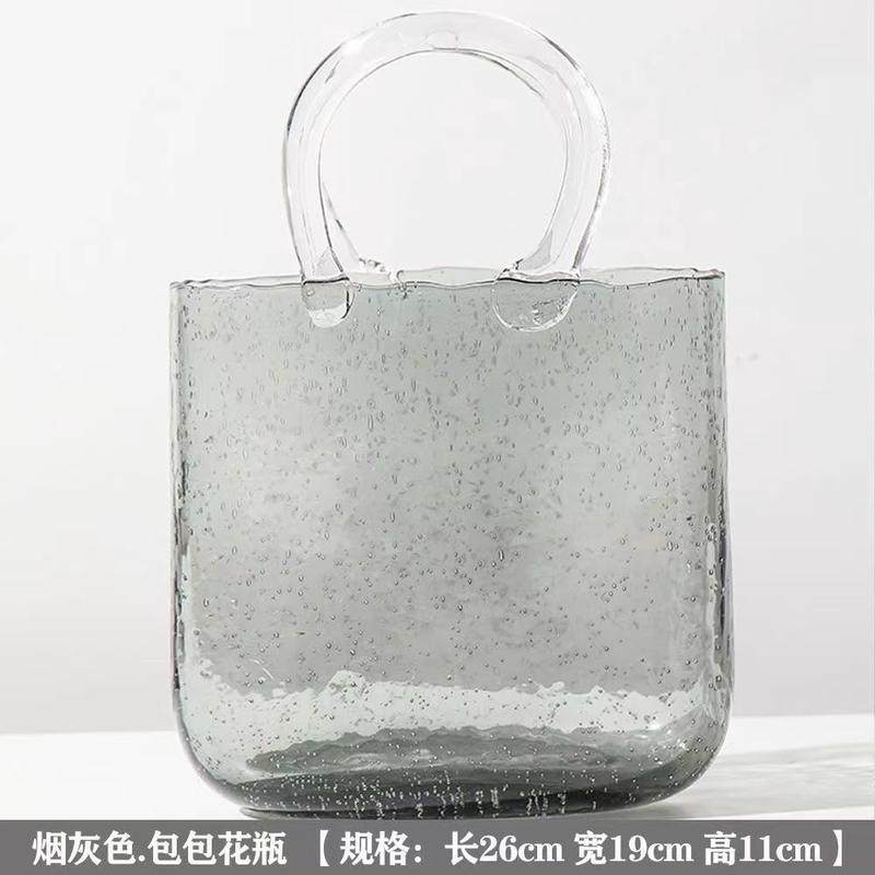 北欧创意手提篮插花瓶玻璃透明简约客厅花器花瓶餐桌摆件鱼缸包包