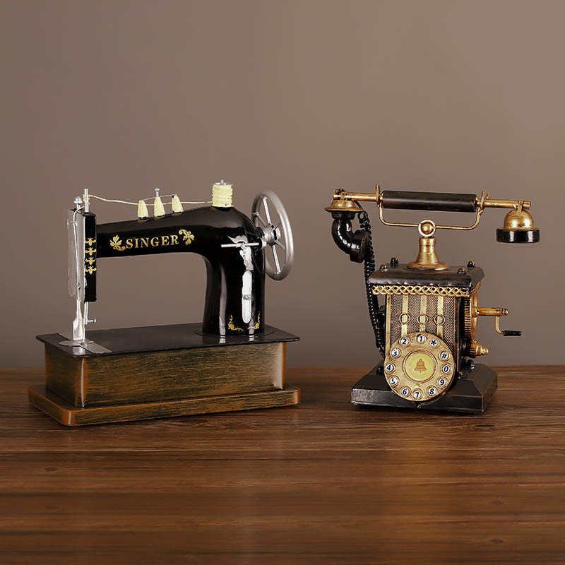 复古老式缝纫机留声机电话机模型服装店怀旧摆件橱窗陈列装饰道具