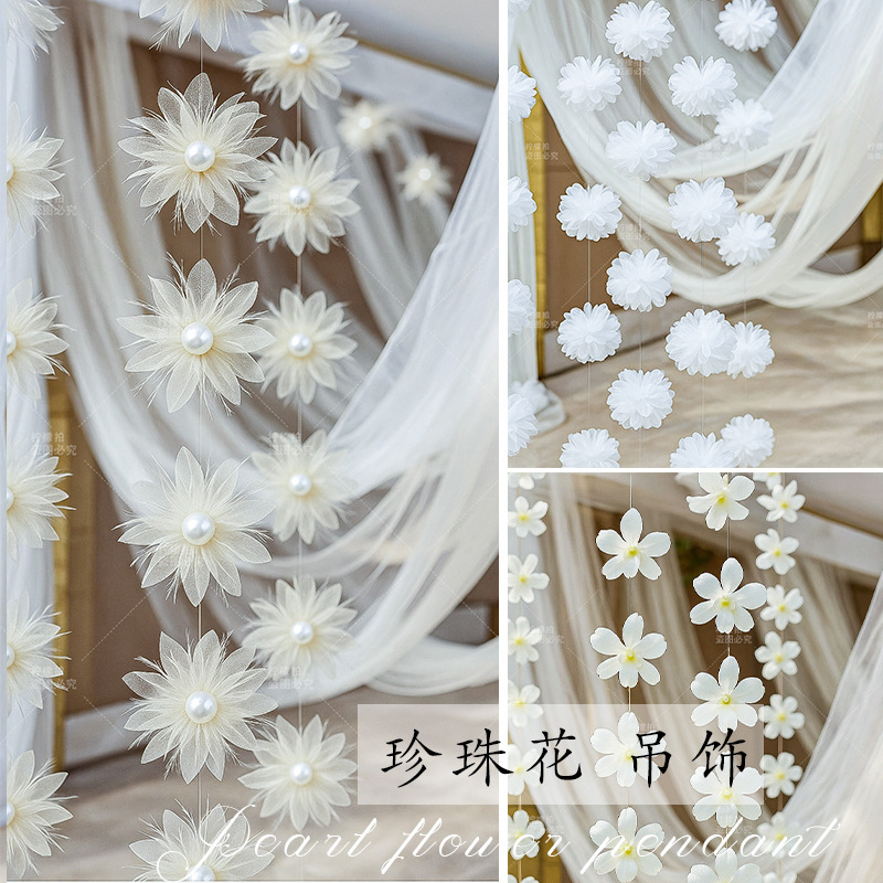 珍珠花串悬挂吊饰婚礼房间装饰门帘背景墙店铺网红道具橱窗布置