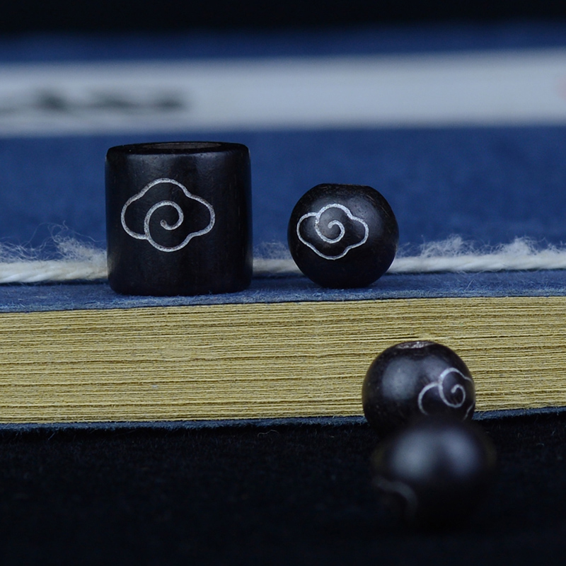 DIY散珠黑檀木镶嵌银丝祥云桶珠佛珠手链挂件饰品配件祥云木吊坠