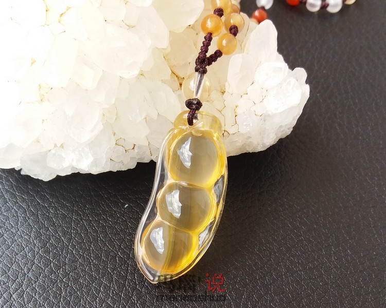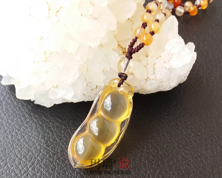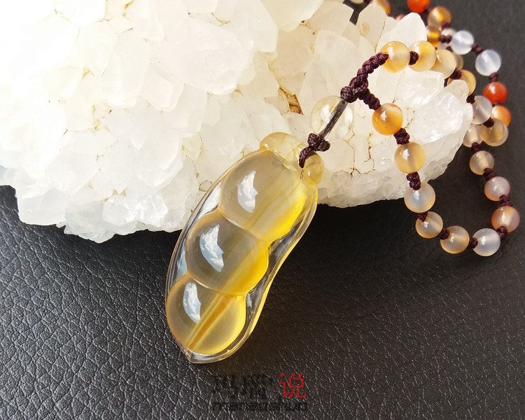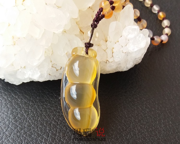 【玛瑙说】马料高冰荧光黄玛瑙吊坠女福豆四季豆 纯天然原色无烧