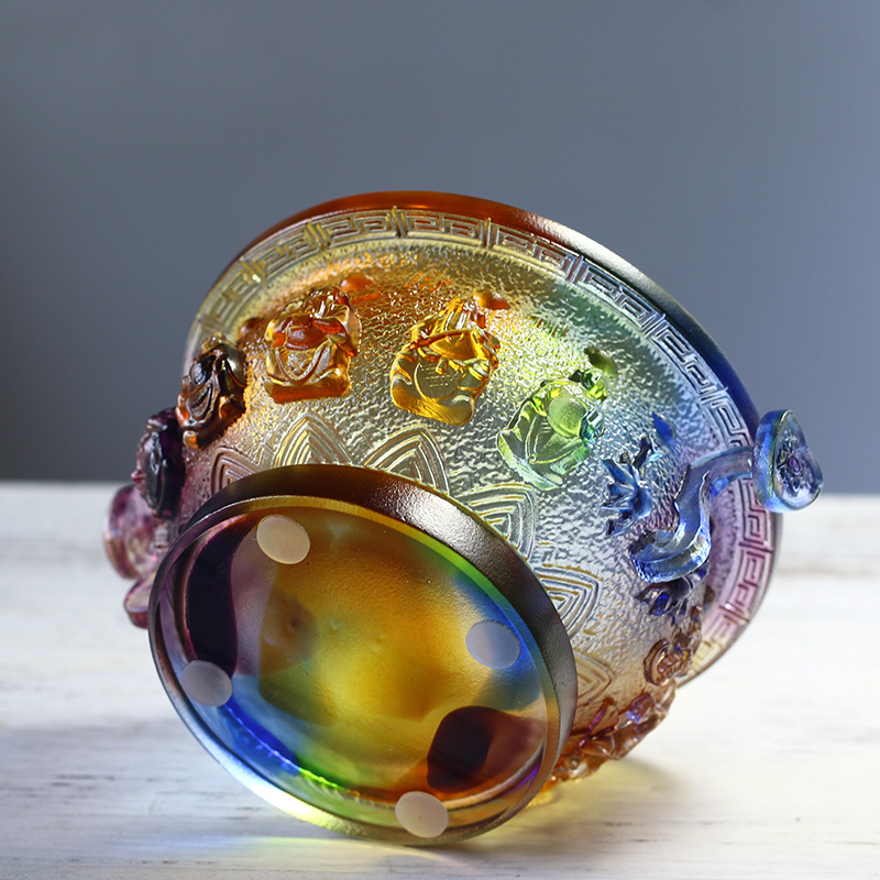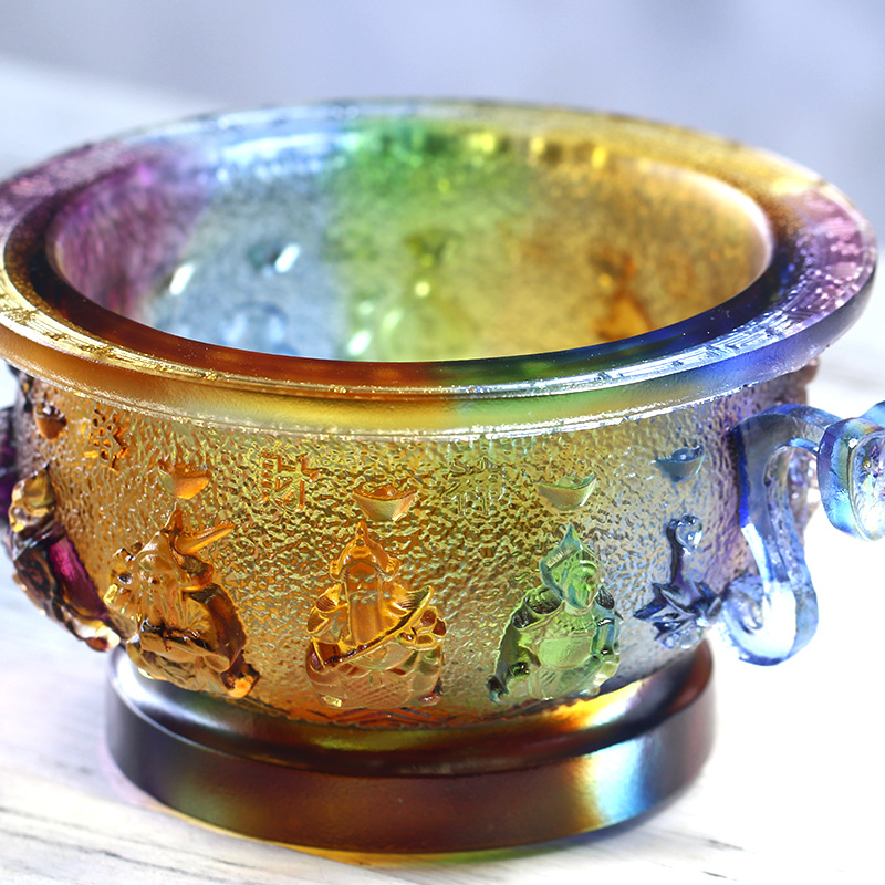 琉璃五路财神聚宝盆招财风水摆件居家客厅商铺摆放装饰开业送礼
