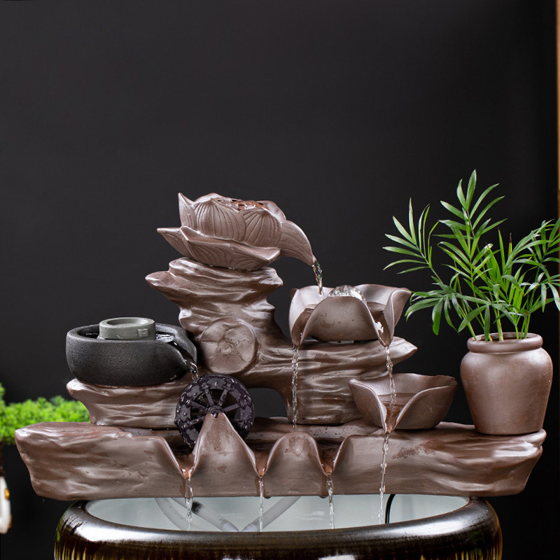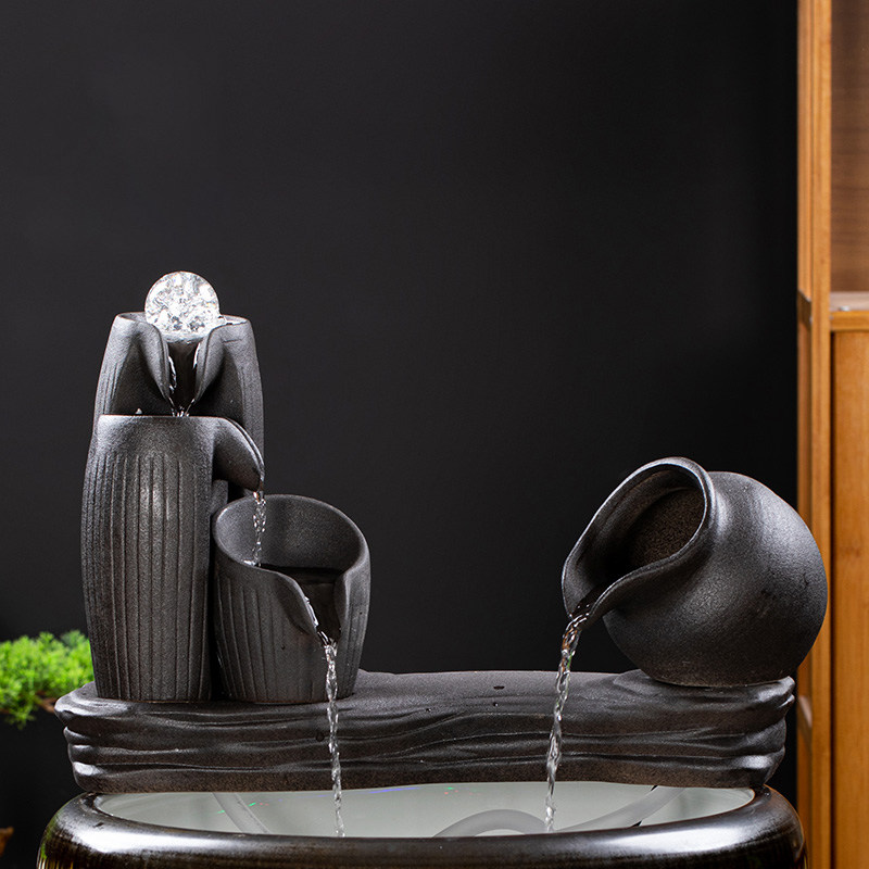 时来运转流水摆件循环水鱼缸生财办公室假山客厅室内招财水缸造景