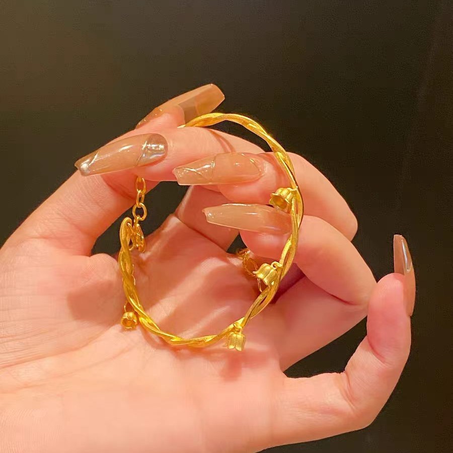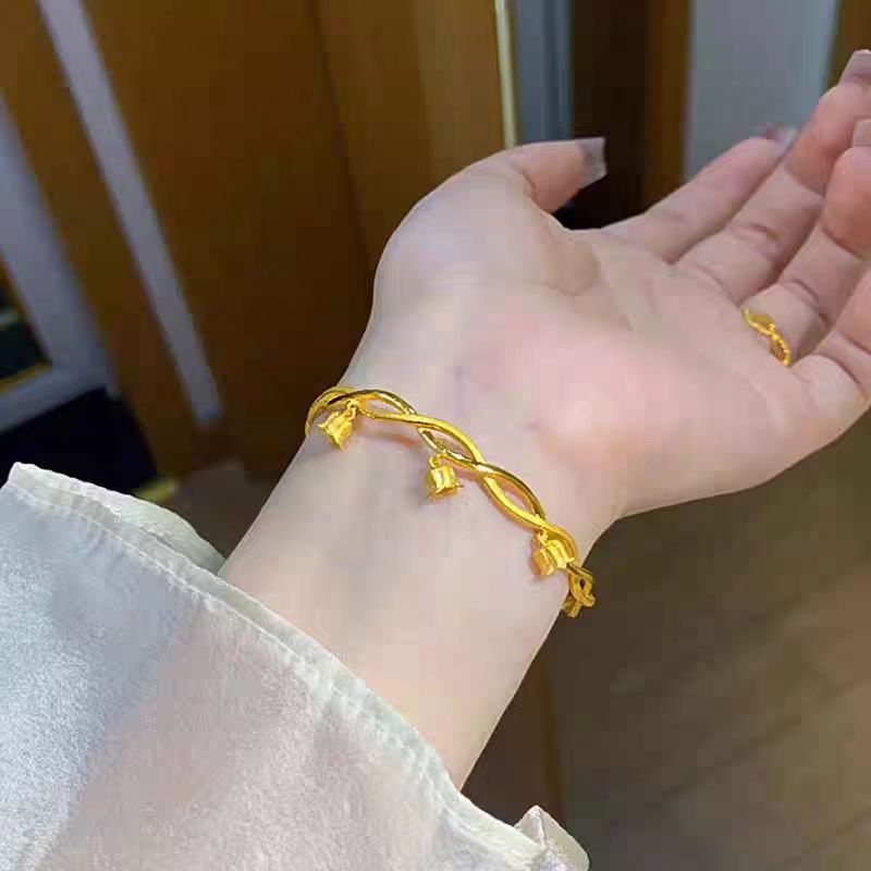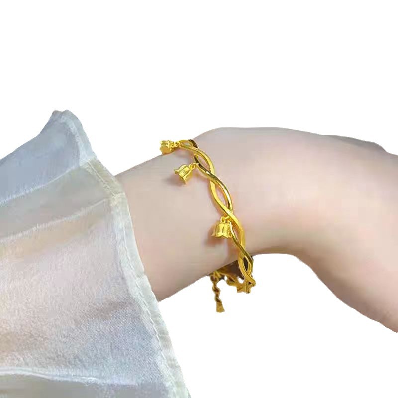 幸福铃兰花越南沙金手镯时尚女士手环生日礼物送女友气质锡金手饰