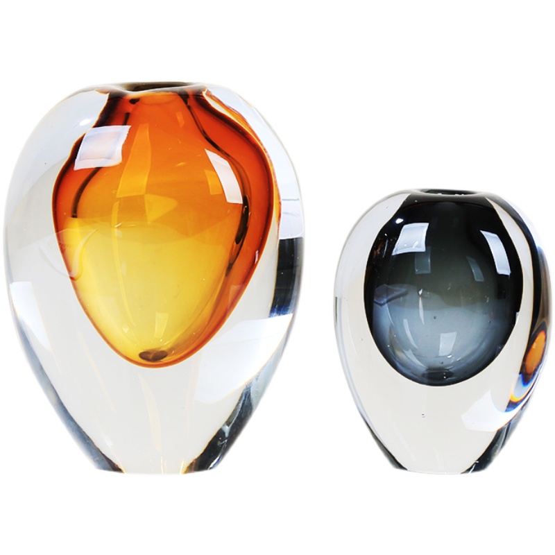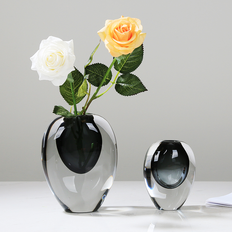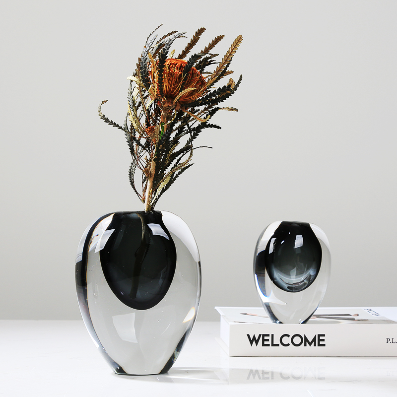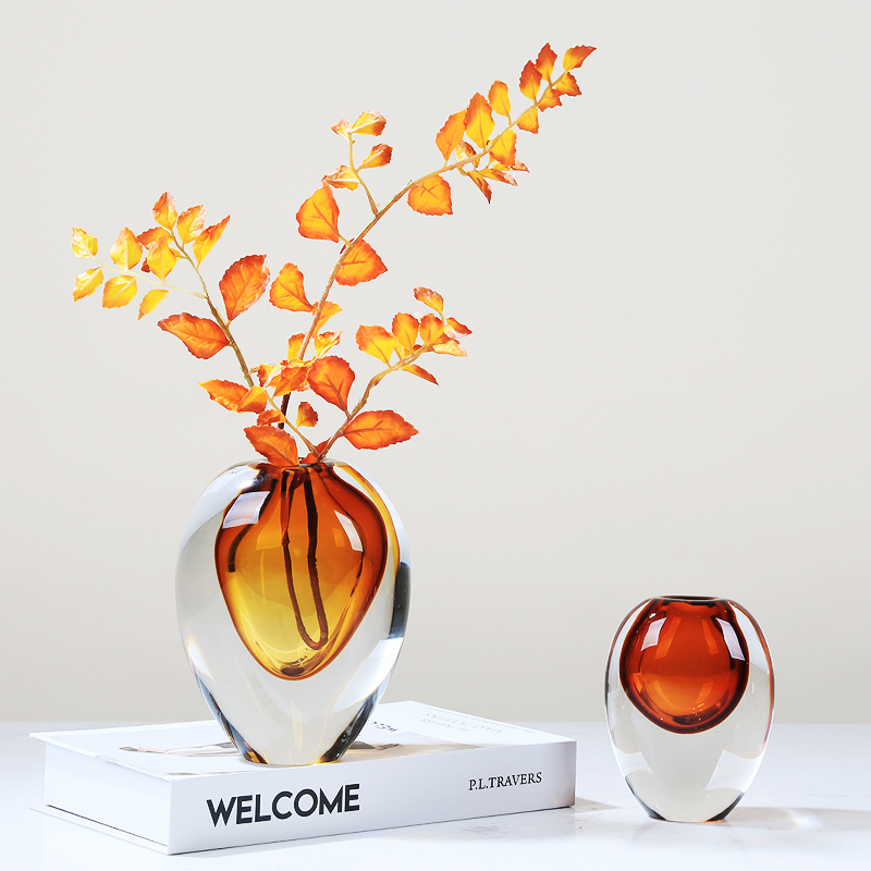 轻奢极简琥珀色玻璃花瓶灰色现代高档客厅样板间售楼装饰花器