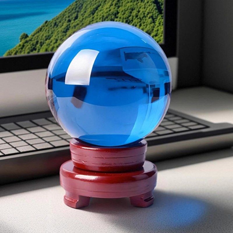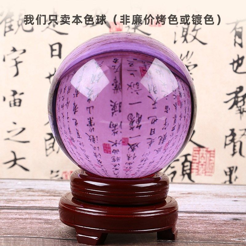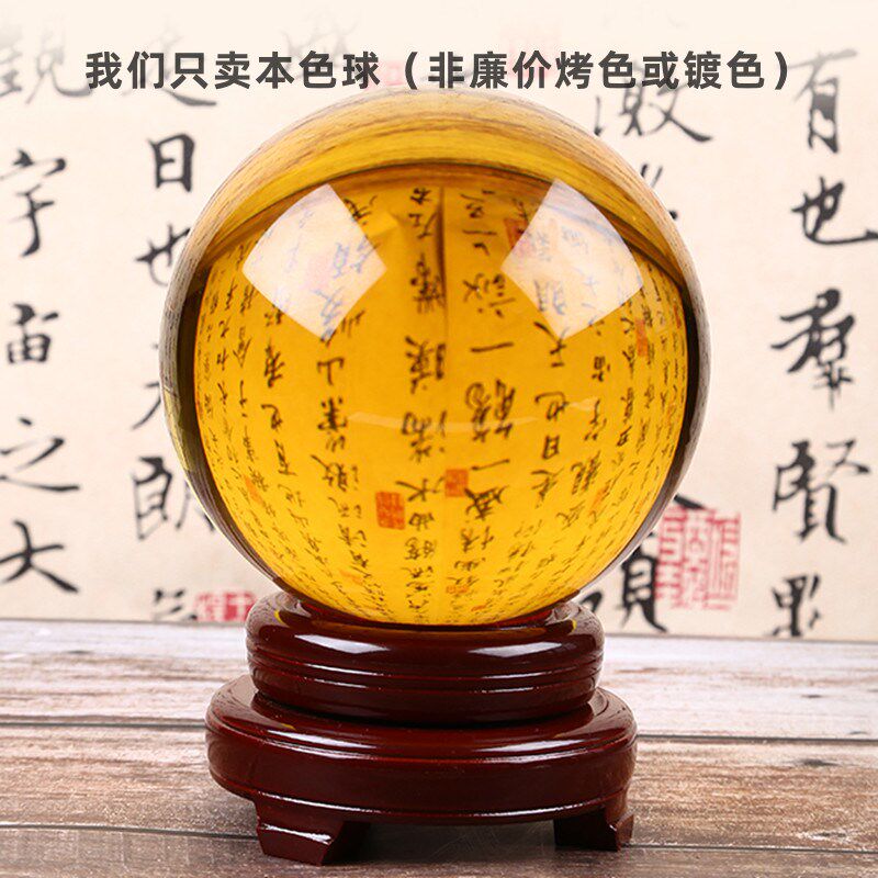 黄色水晶球摆件透明玻璃圆球客厅B天蓝紫粉家居办公桌开业装饰摆