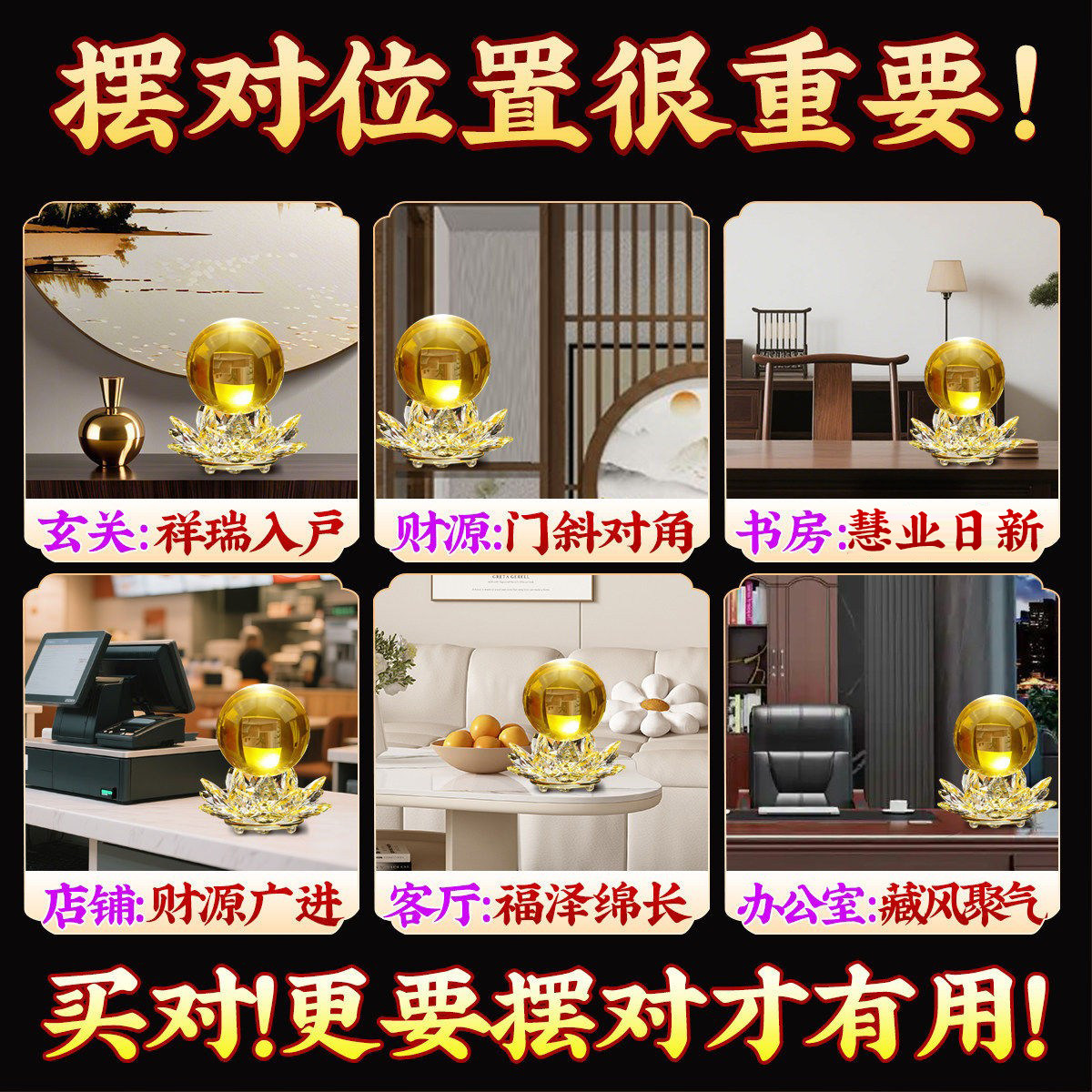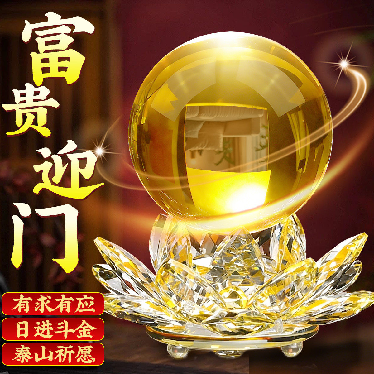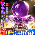 泰山直发黄色水晶球摆件招财莲花底座紫黄蓝粉色办公室乔迁开业