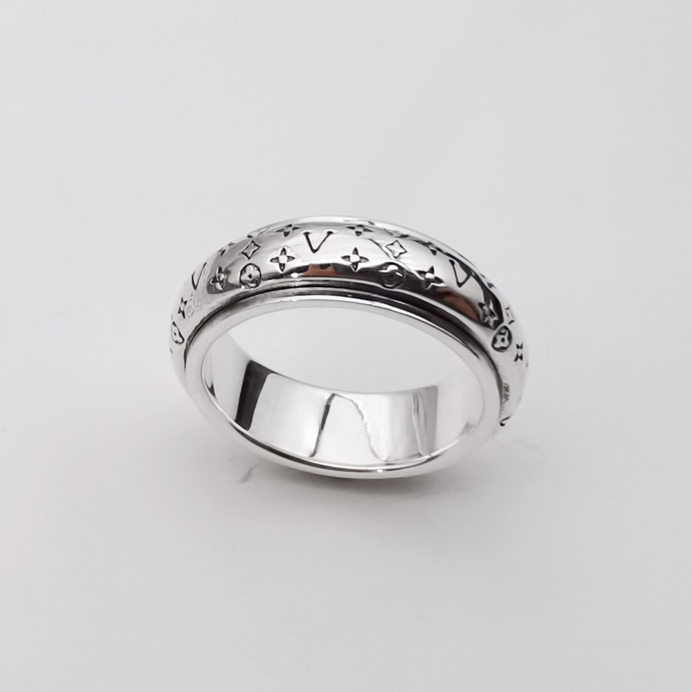 S999纯银老花涂鸦转动戒指 小众设计风男女款时尚情侣单身戒指