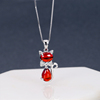 S925纯银猫咪项链小猫吊坠红色石榴石锆石甜美可爱锁骨链颈链饰品