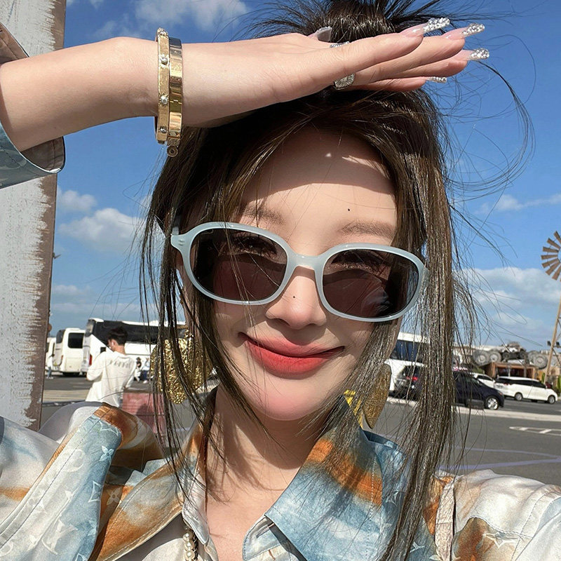 2025新款法式高级感太阳镜女潮方圆脸显瘦ins风夏季蓝色休闲墨镜