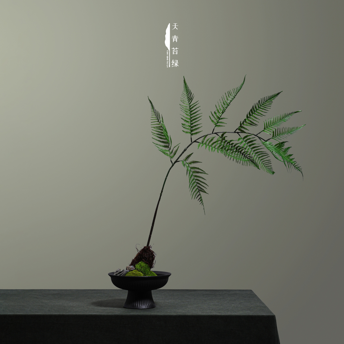 天青苔绿 新中式蕨类永生苔藓盆景仿真花艺 茶室客厅茶桌禅意摆件