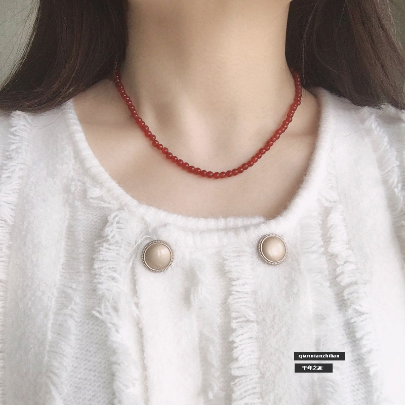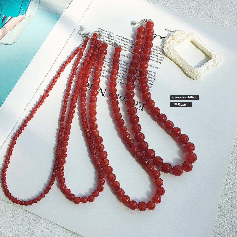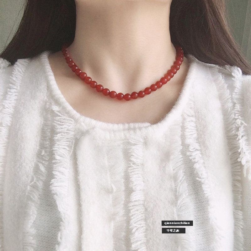 天然红玛瑙项链女红色珠子锁骨链新中式串珠水晶毛衣链饰品礼物