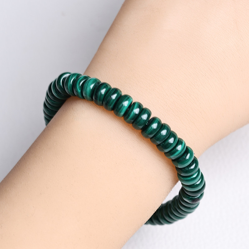 天然孔雀石直切算盘珠手串独特千层纹绿色国风水晶玉石孔雀石饰品