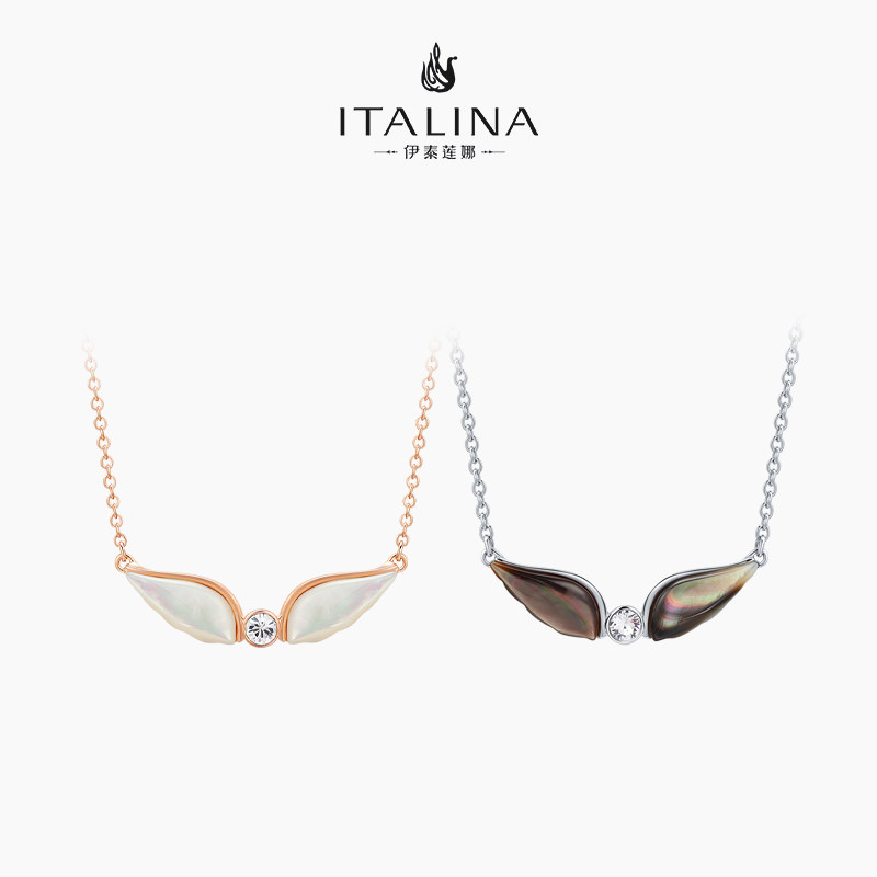 伊泰莲娜羽翼短锁骨项链灰色贝吊坠简约日韩版颈链礼物送女朋友
