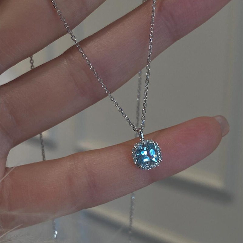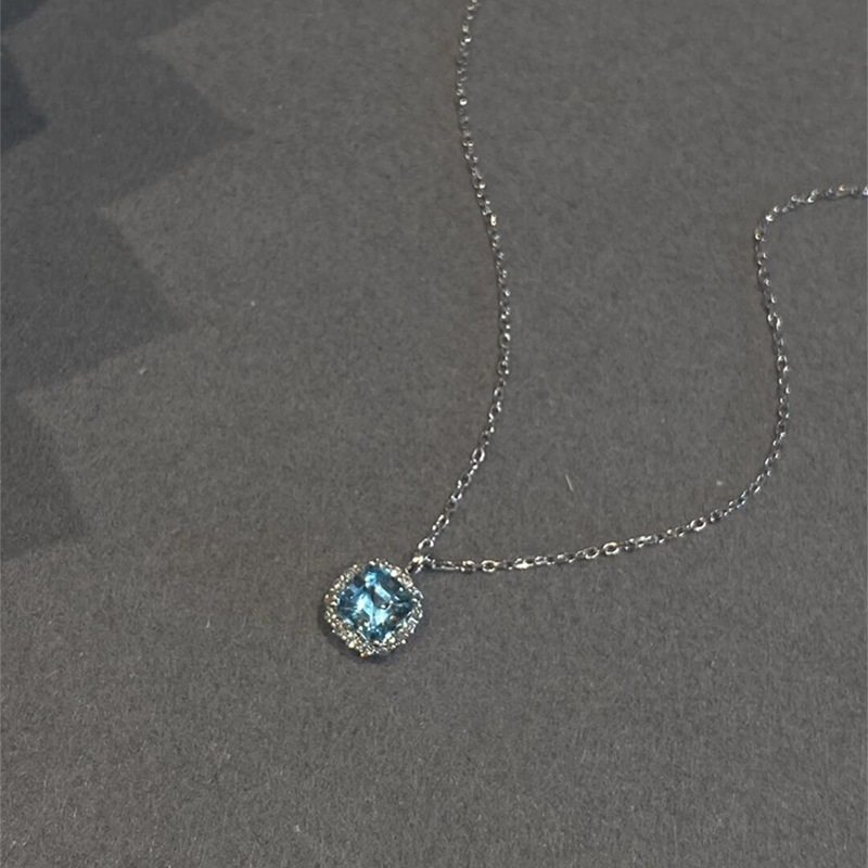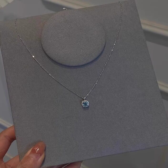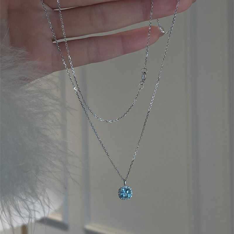 海盐蓝色细闪小方糖项链女款2025新款高级感轻奢小众精致锁骨颈链