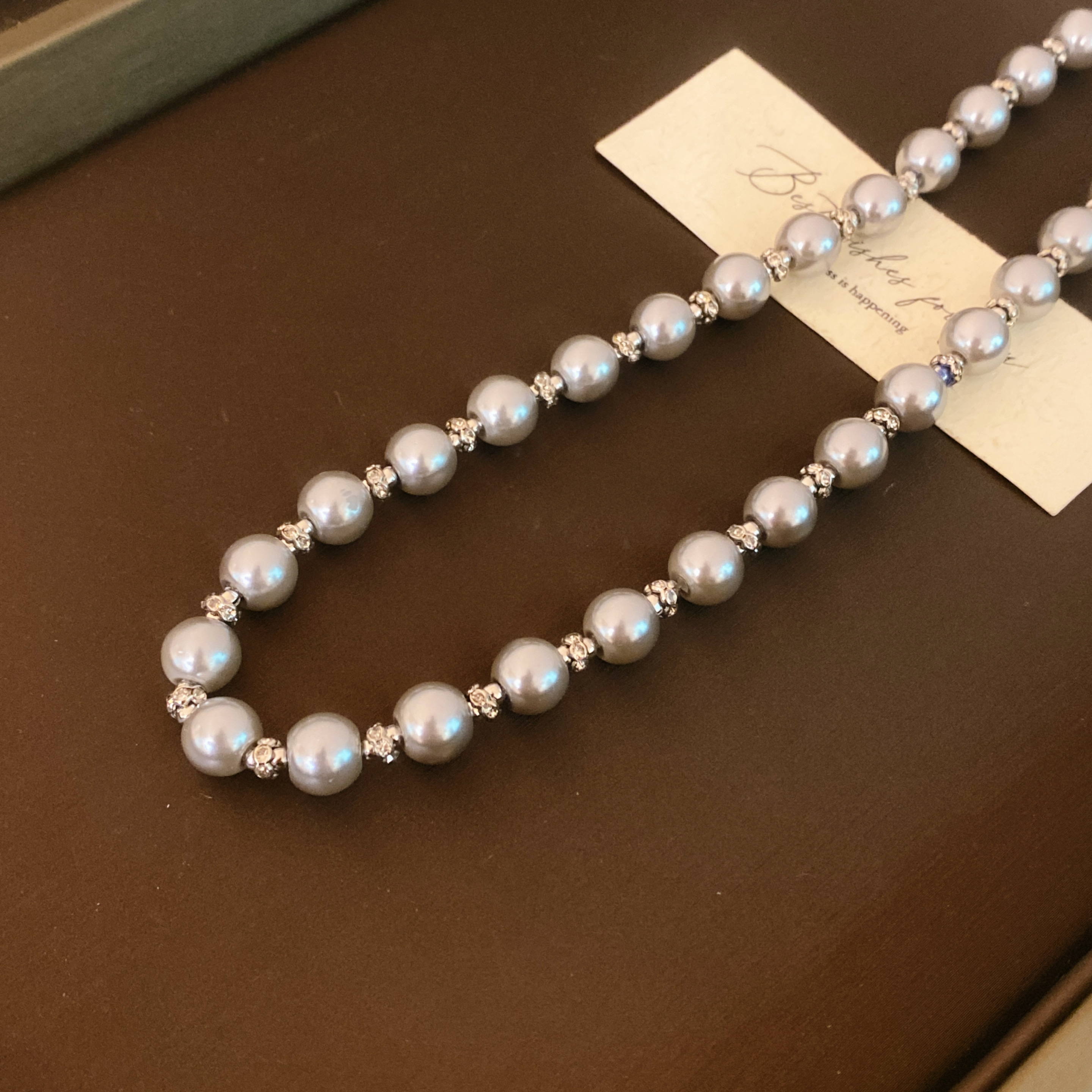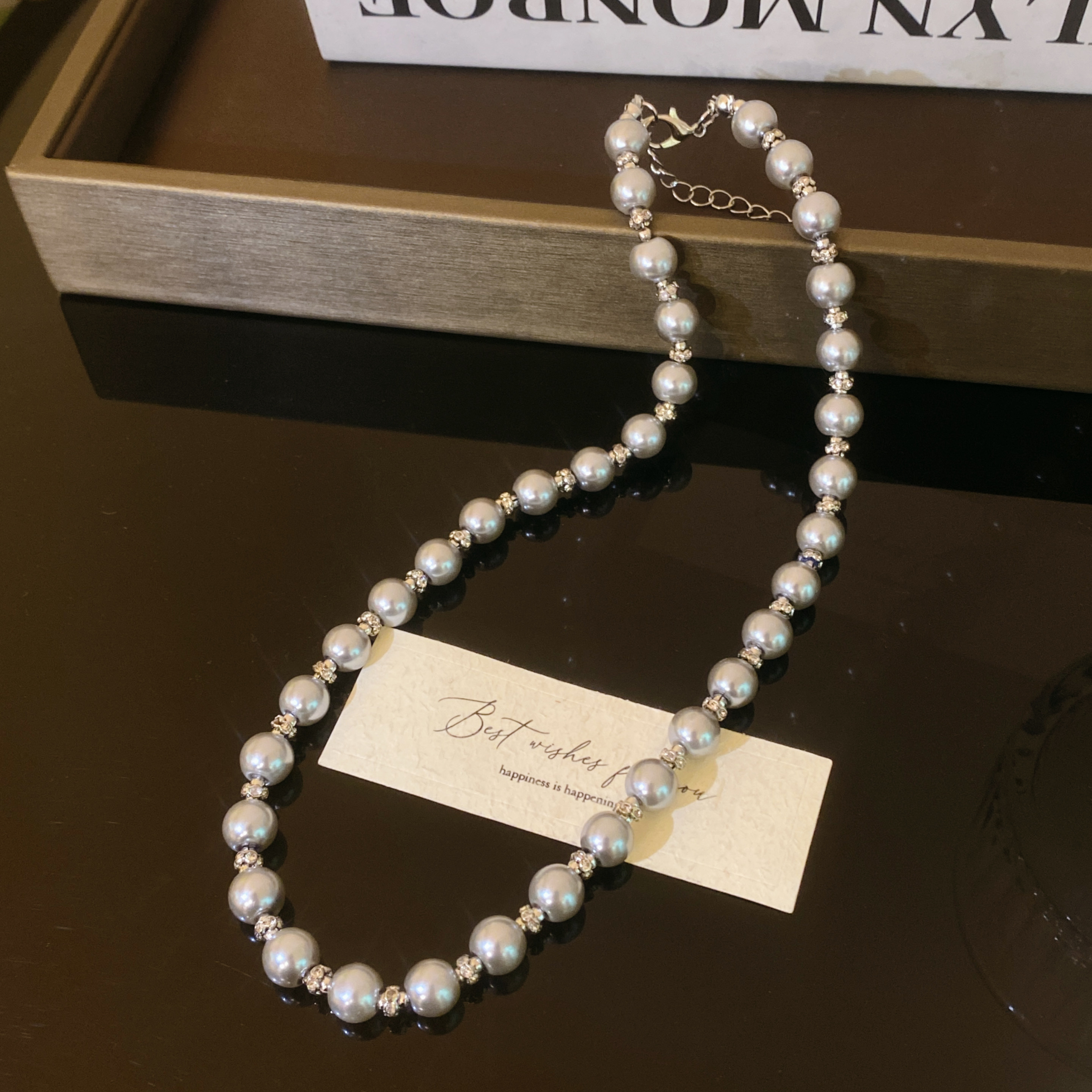 法式仿珍珠轻奢几何项链小众气质简约高级感毛衣链百搭新潮颈链