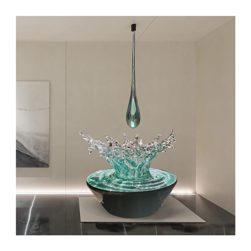 大型透明水滴雕塑吊饰酒店客厅玄关树脂水花摆件装饰工艺术品挂件