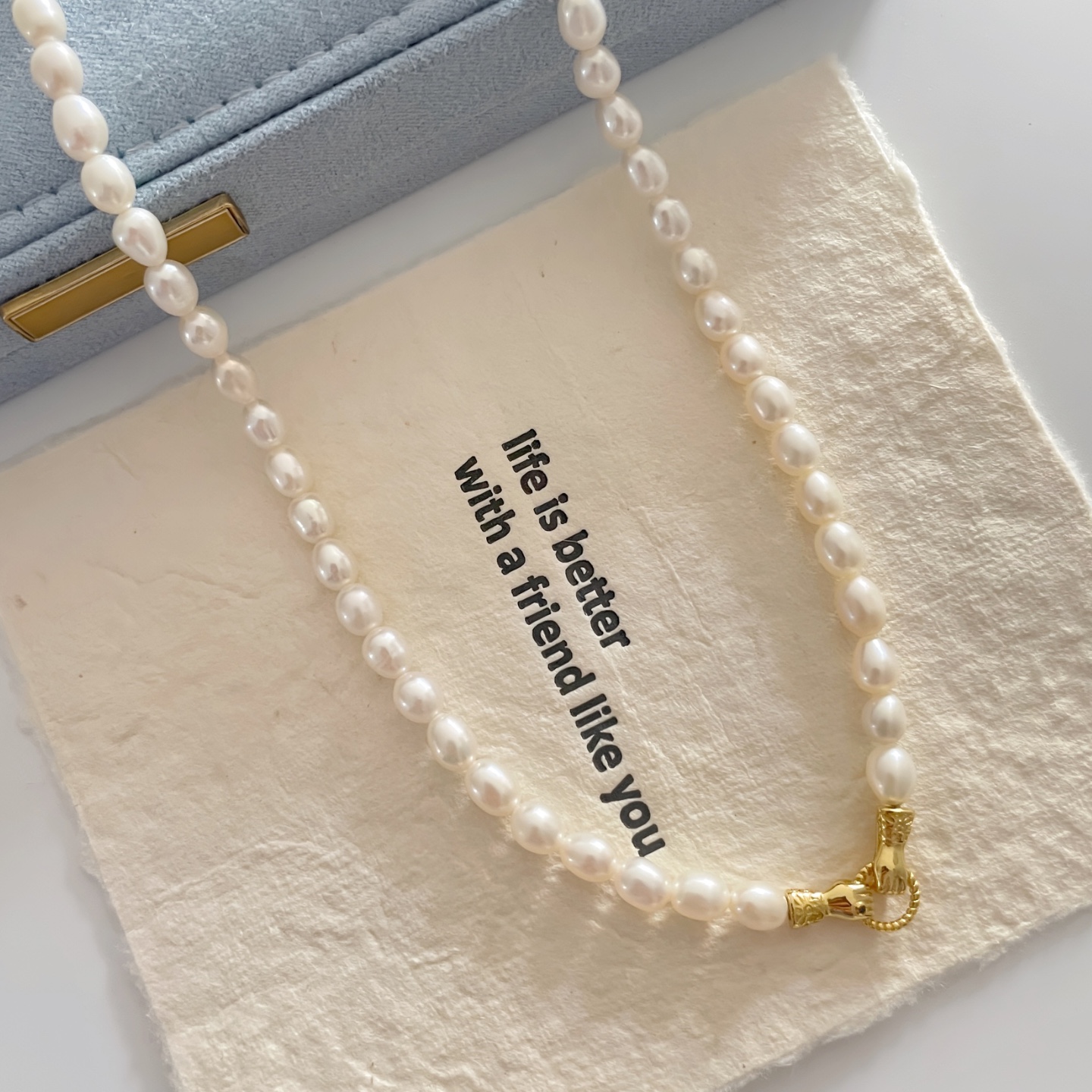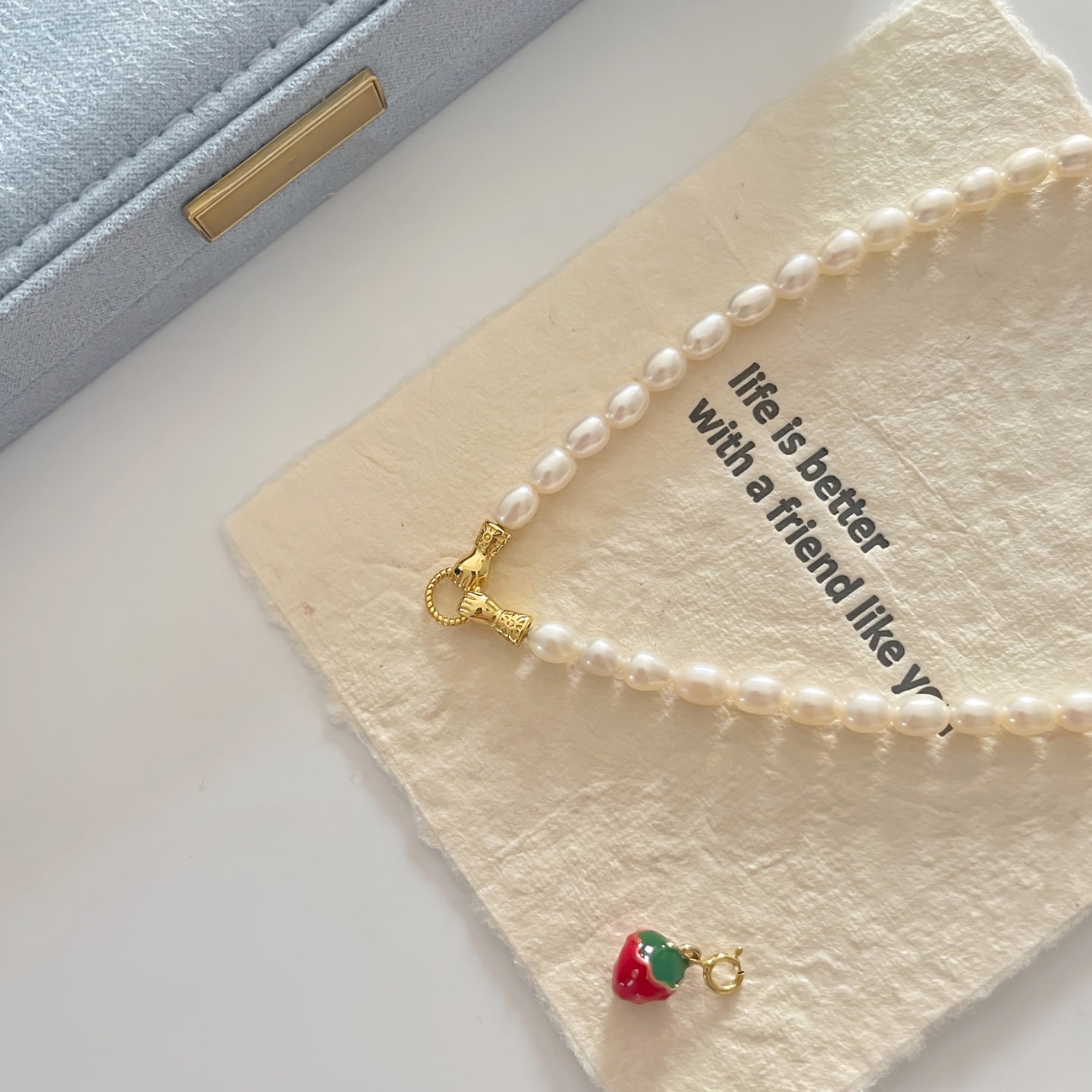 原创设计天然米粒淡水珍珠拉手高级感轻奢珍珠精致草莓吊坠拉手扣