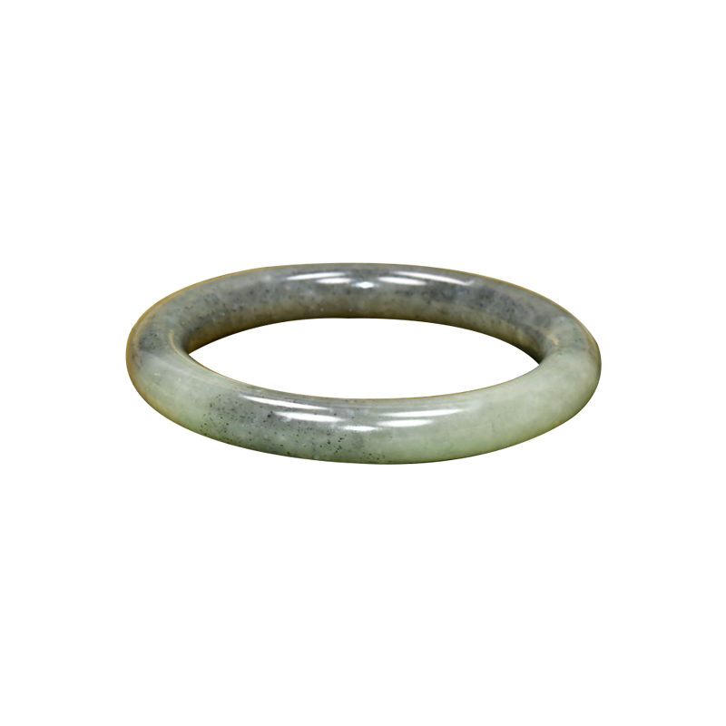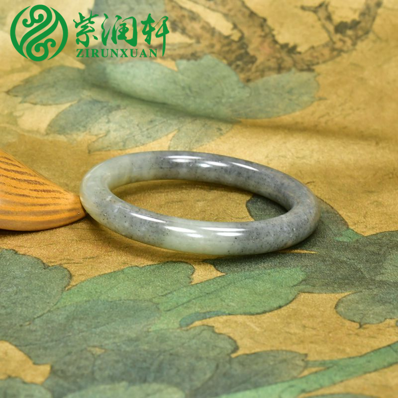 紫润轩新疆和田玉水墨青白青花籽料手镯58 3MM圆条山水意境镯收藏