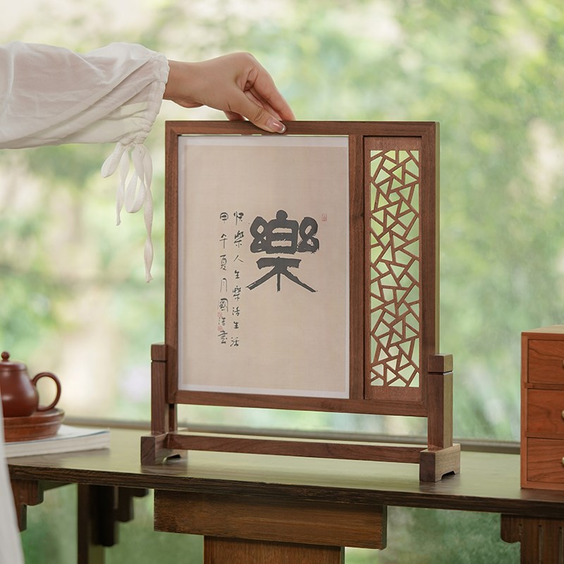 北美黑胡桃木隔断插屏中国风室内家居摆件摆台书房书法实木裱画框